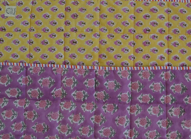 前回即完売した当店大人気の★☆折り畳める薄型ペットマット☆★ NEWデザインが新登場! こだわりポイントは、 ①折り畳めて、持ち運びに便利! ②インドの伝統的技法で作られたブロックプリント生地使用! ③薄型だけど、程よくフカフカな綿入りキルト! ③そのまま洗えて、清潔キレイ! ・コンパクトに畳めるペットマットが欲しい! ・ペットカフェ、車内、ピクニックなど、様々な場所に使えて持ち運び便利な薄型マットが欲しい! ・誰とも被らない可愛いペットマットが欲しい! ・そのまま洗えて、清潔を保てるマットが欲しい! そんなお客様のたくさんのご要望に応え、 "第3弾!畳める薄型ペットマット"がついに完成!! サイズ:60cm×80cm、80cm×80cm ⇒オプションよりサイズを選択願います。 【ブロックプリントキルトとは】 ブロックプリントとは、 手彫りの木版を使って布に模様を押し付けていくインドの伝統工芸。 その歴史はとても古く、起源前にまで遡るとも言われています。 カラフルで複雑な柄ほど幾重にもインクを重ねていくため、その作業工程は果てしなく、機械では出せないハンドメイドならではの優しい風合いが生み出されます。 ※こちらはペットマット単品での販売となります。 □素材:インド産ブロックプリント(綿100% )、ポリエステル綿 ⇒裏表リバーシブルでご使用頂けます。 □made in india -注意- インドのブロックプリントは木版画を押し付けて職人がひとつひとつ模様を描いている為、色のズレや濃淡、染料のハネなどがございます。又、キルトステッチの糸の飛び出しがある場合がございますのでご了承くださいませ。 -お手入れ- 最初の頃は多少染料が抜けることがあります。洗濯機をご使用になる場合は、畳んでネットに入れ「おしゃれ着コース」や「弱コース」で単独洗いしてください。脱水は30秒~1分までの短時間でお願いいたします。 縮む恐れがありますので乾燥機にはかけないでください。長持ちさせるためには手洗いをオススメいたします。