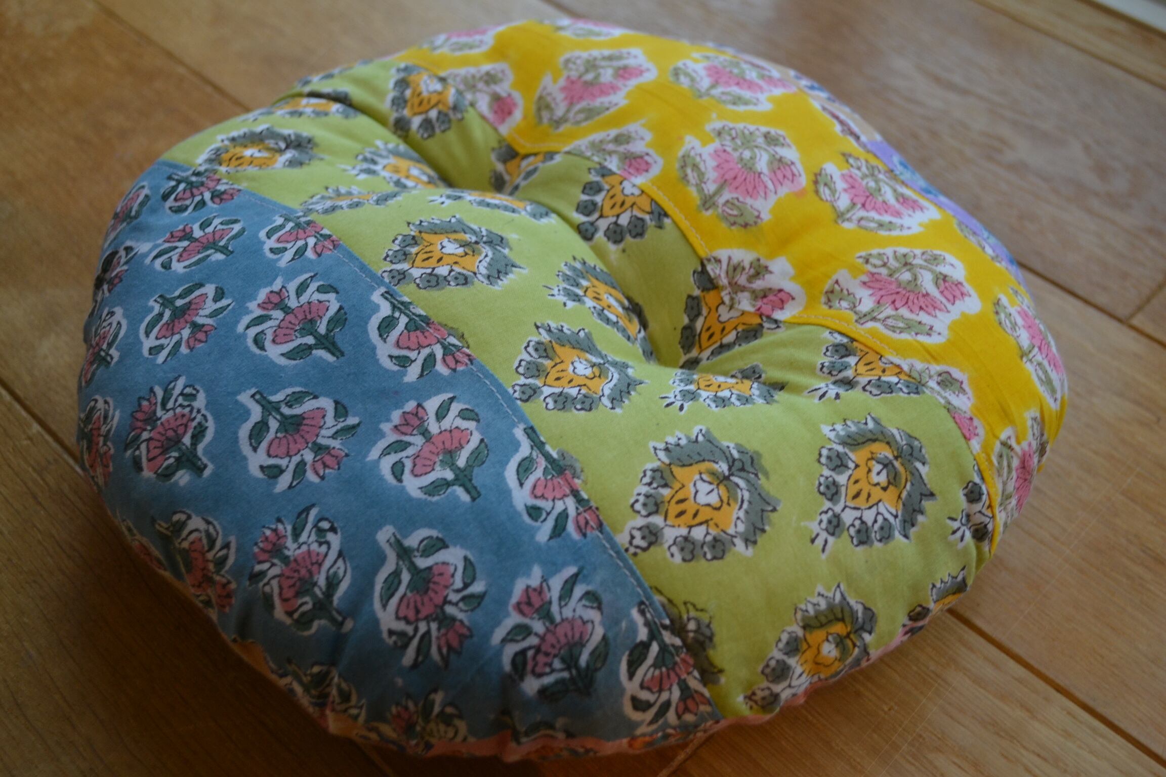 ブロックプリント生地はインドからお取寄せ、マットは国内で一つ一つ丁寧に製作。