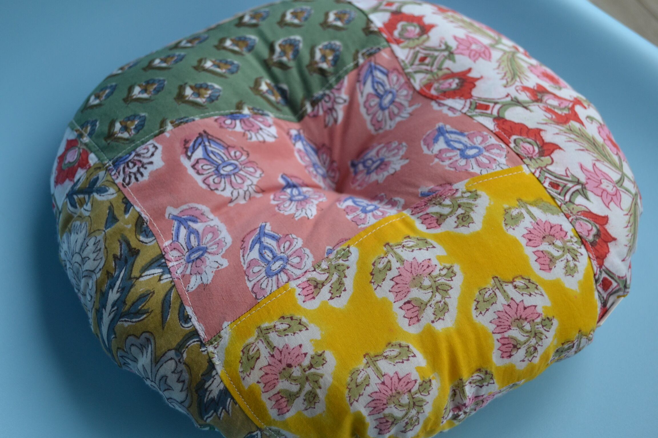 ☆パッチワーク☆丸型ペットクッション③/ブロックプリント/直径30cm