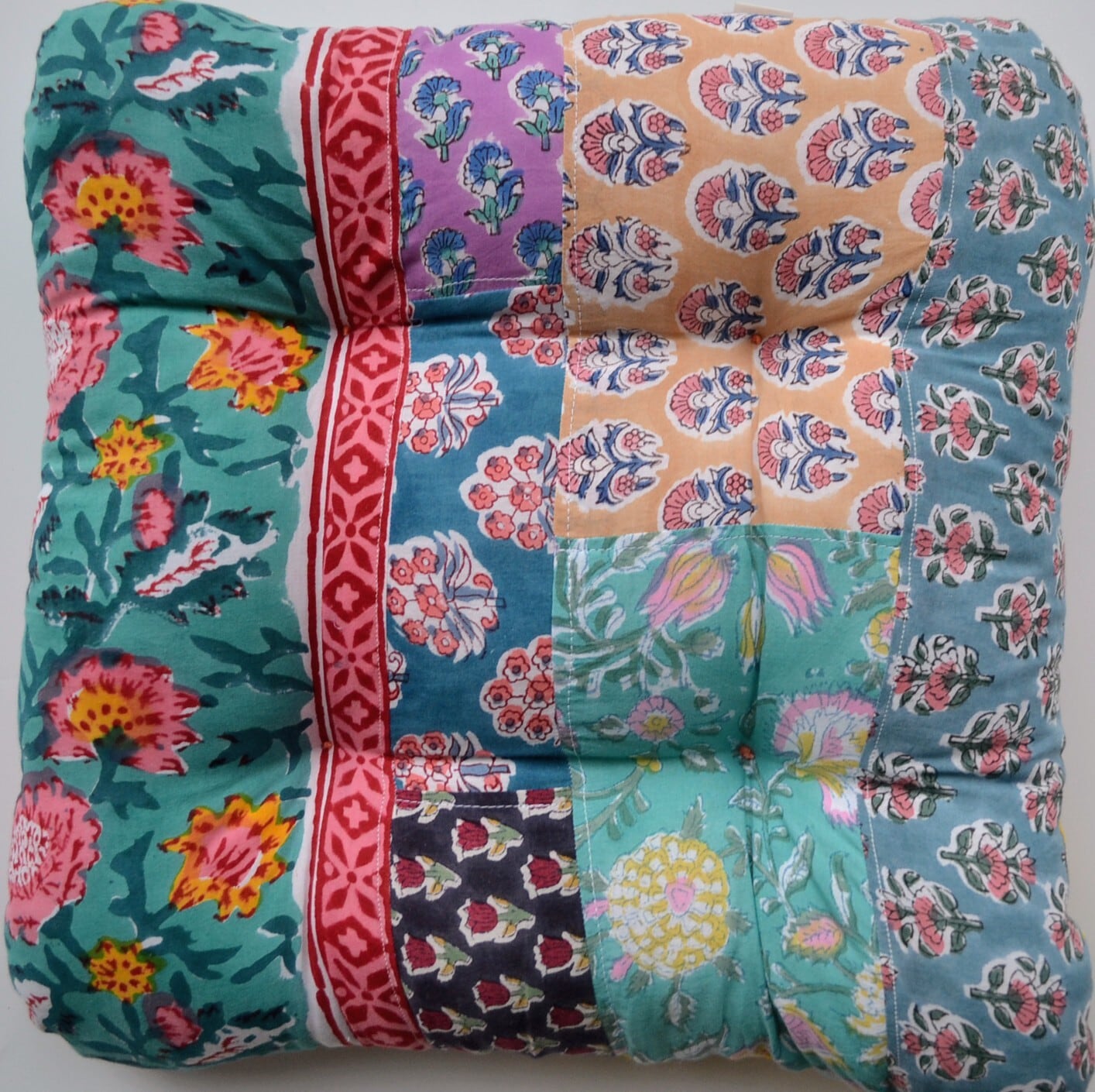 ☆パッチワーク☆四角型ペットクッション①/ブロックプリント/35cm