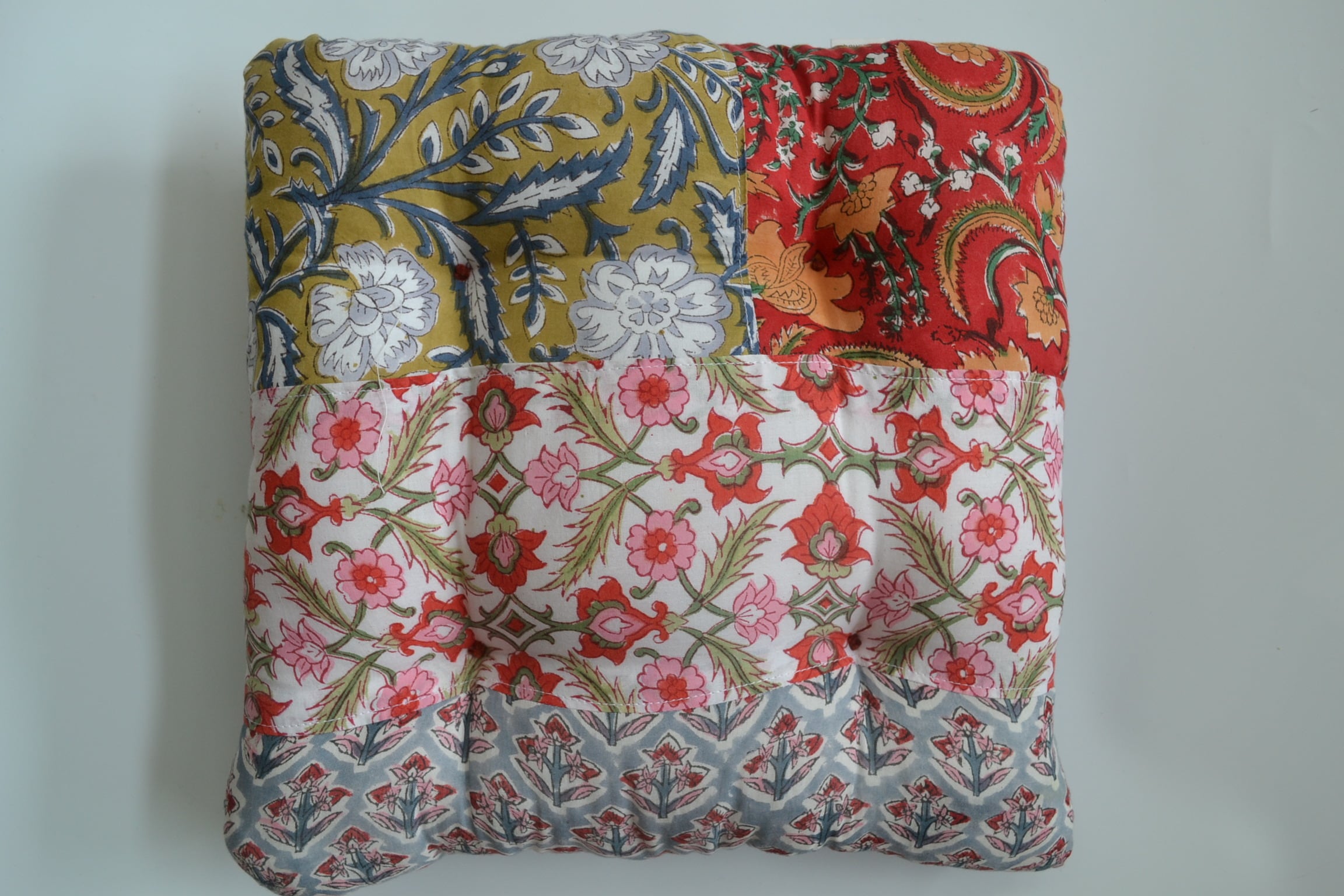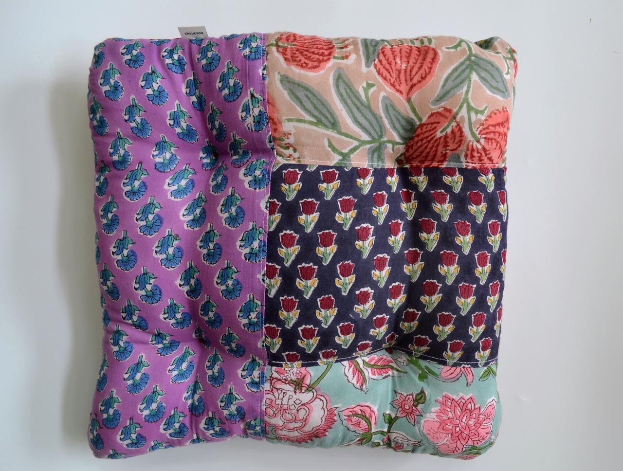 四角型ペットクッション②/ブロックプリント/パッチワーク/30cm