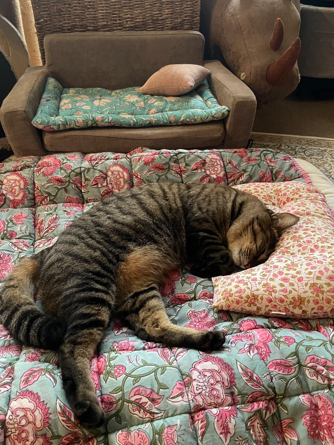 四角型ペットクッション④/ブロックプリント/パッチワーク/30cm