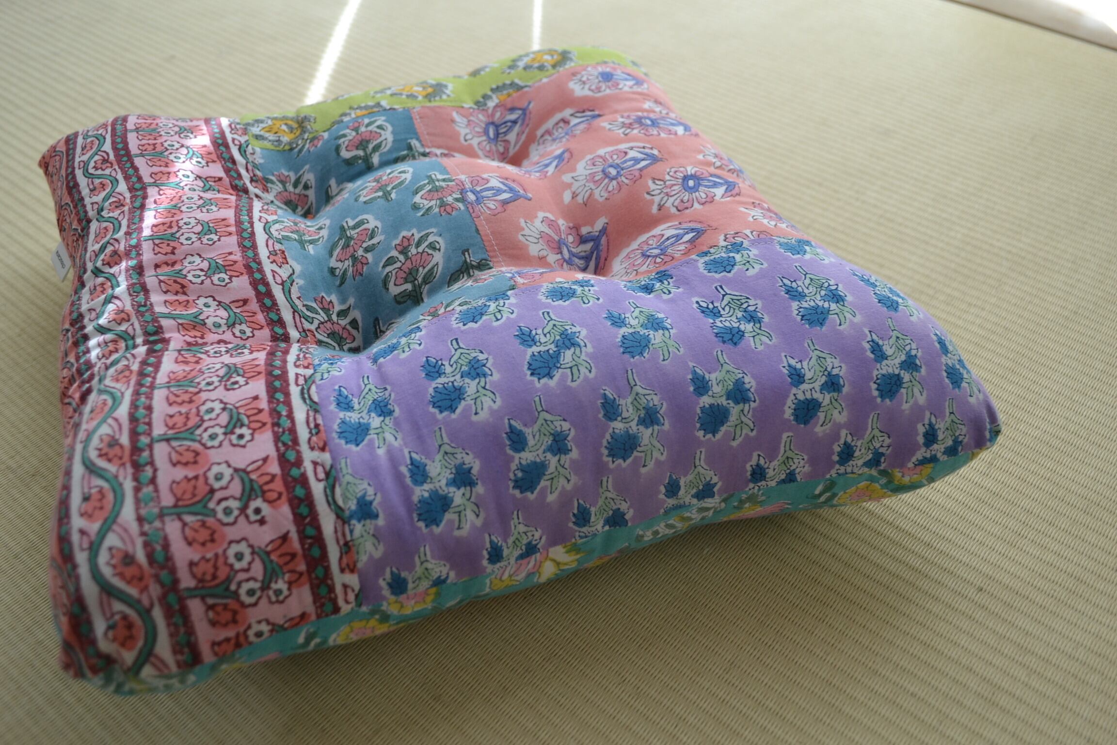 四角型ペットクッション⑤/ブロックプリント/パッチワーク/30cm