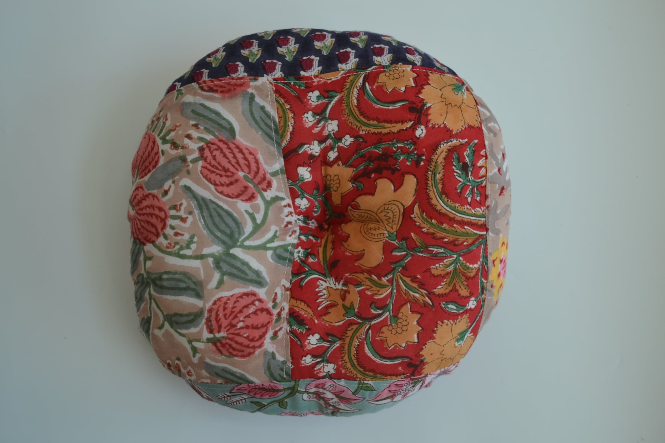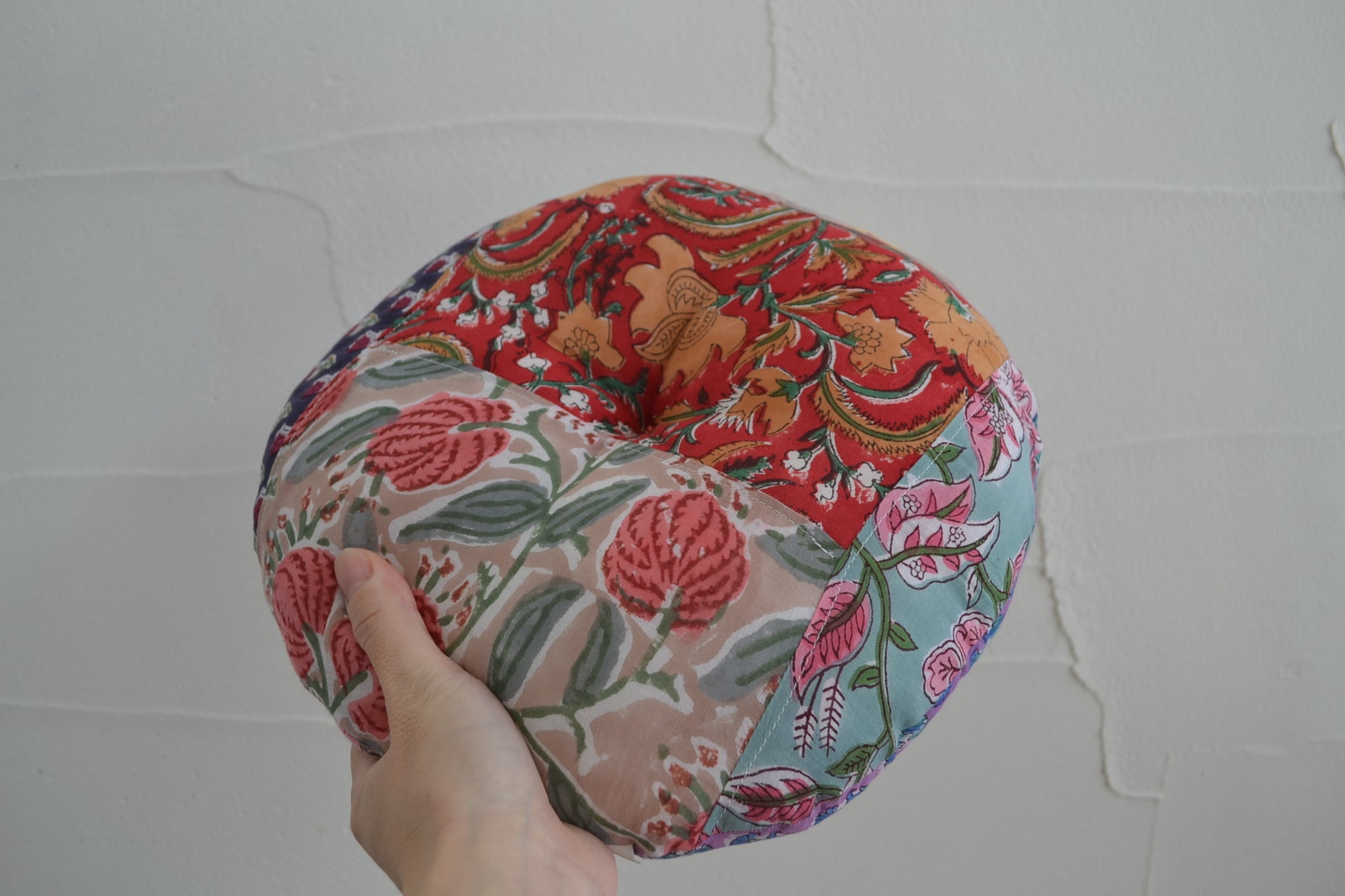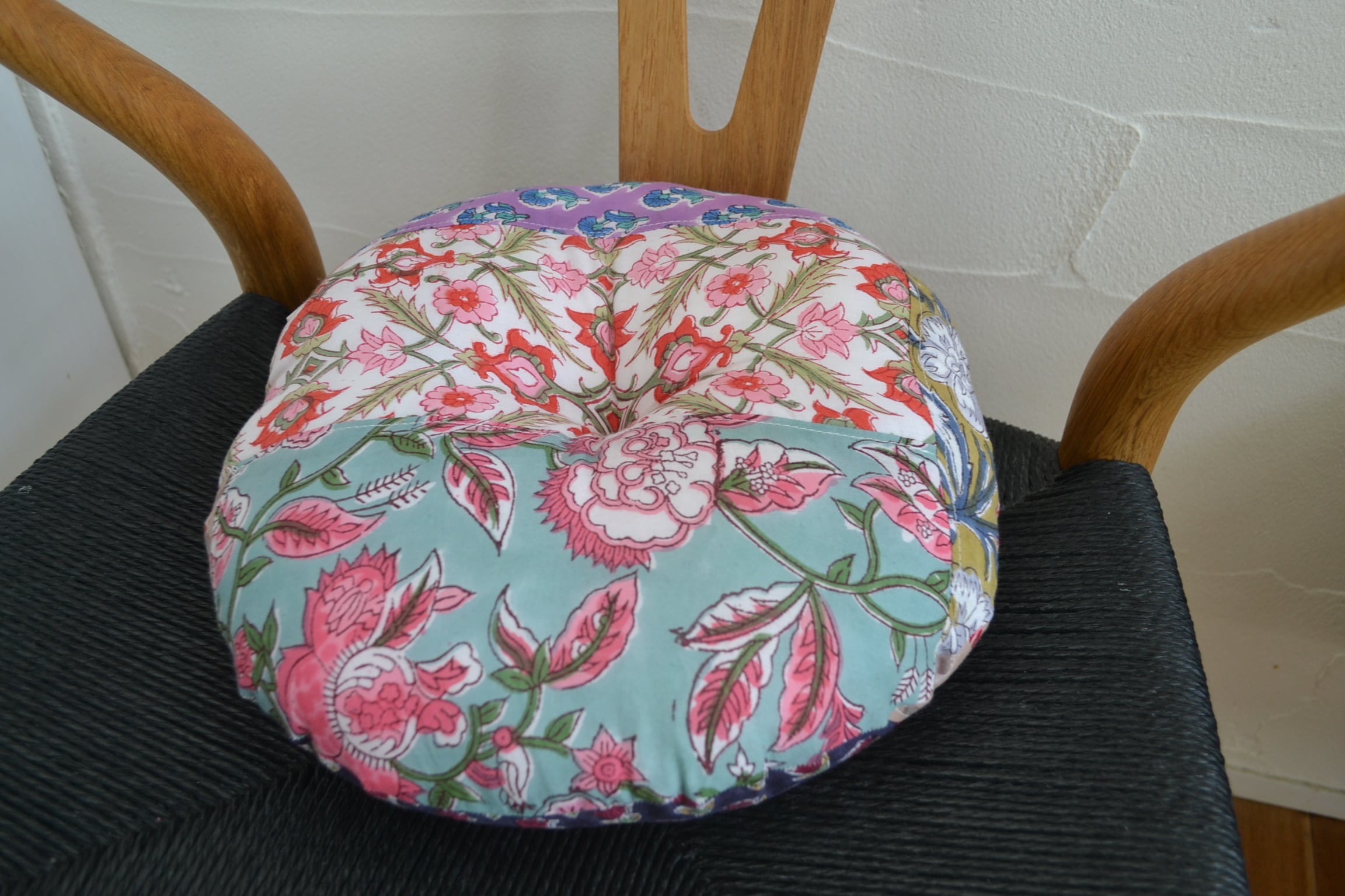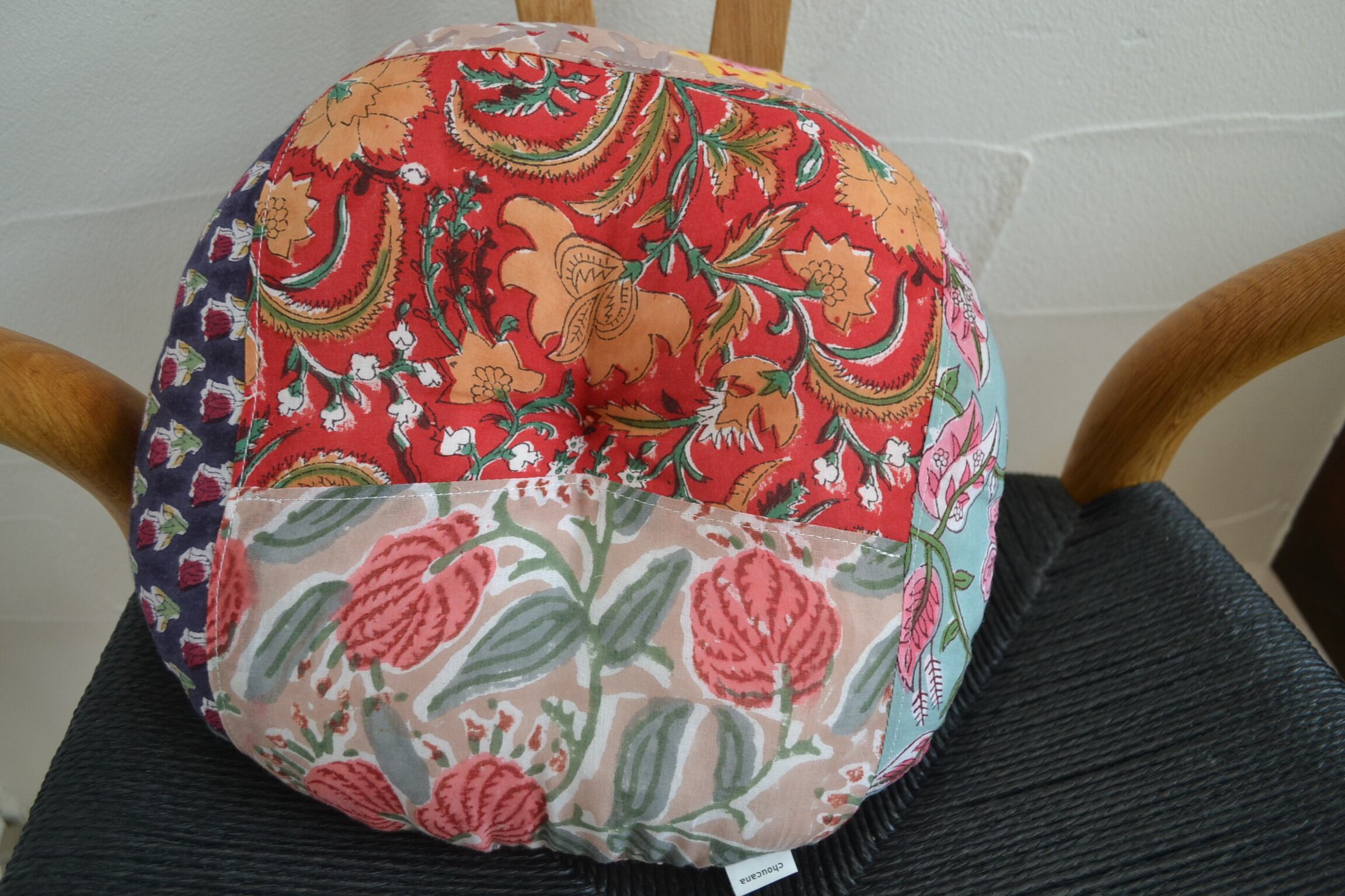 丸型ペットクッション①/ブロックプリント/パッチワーク/直径30cm