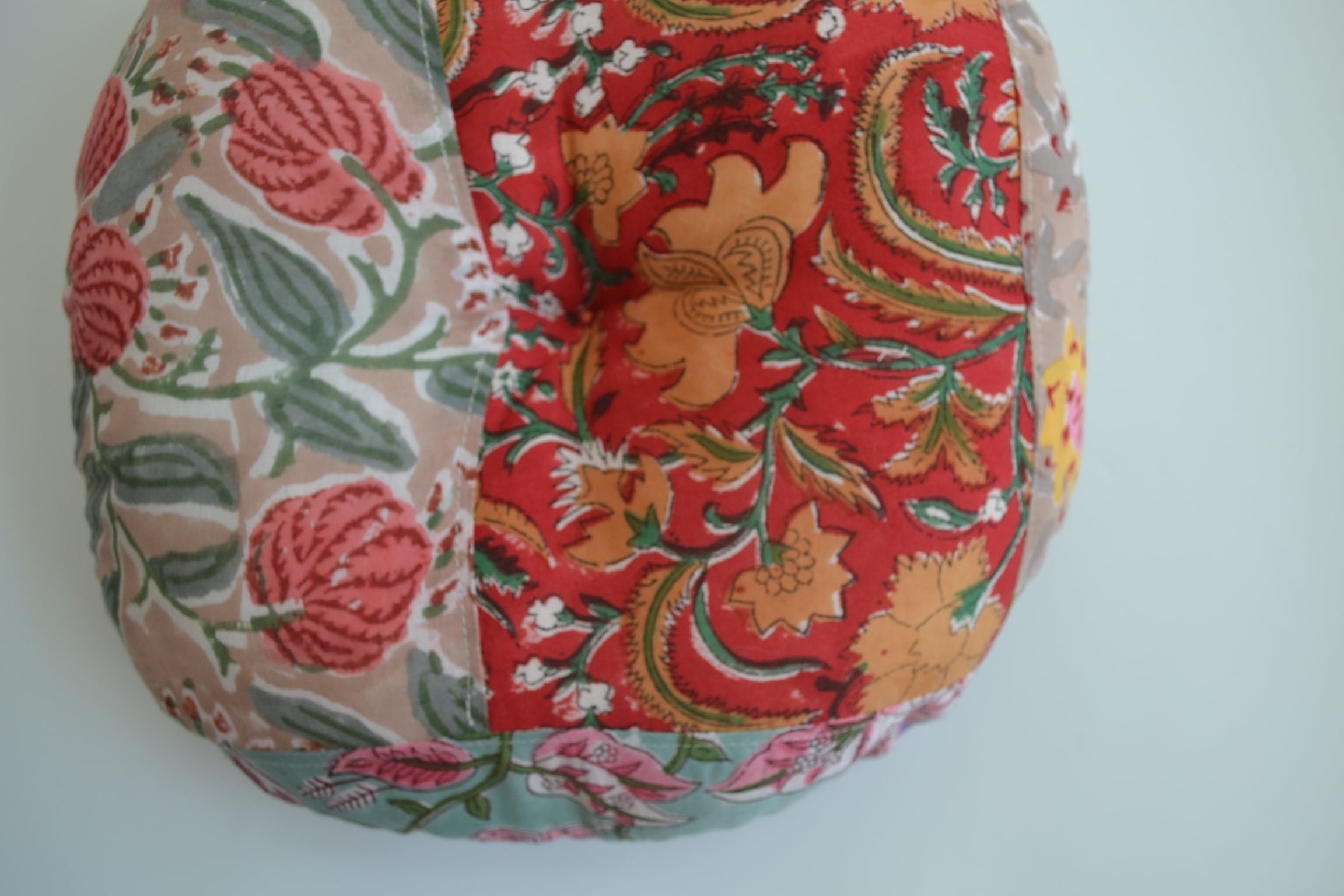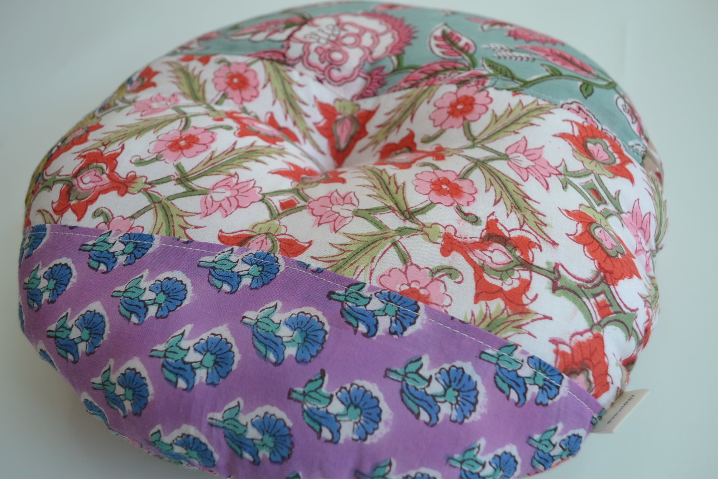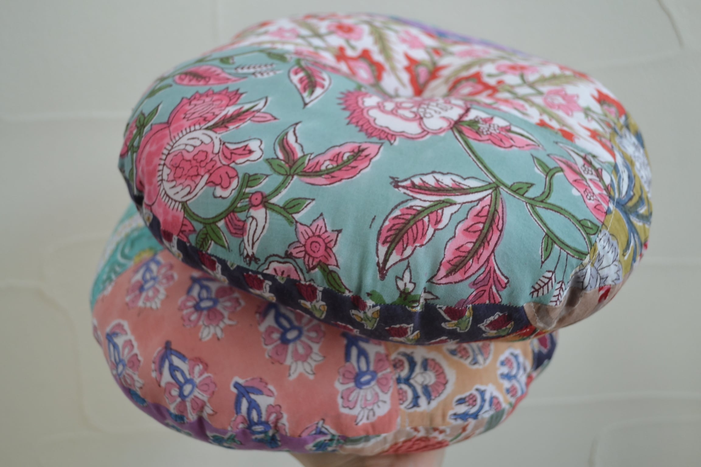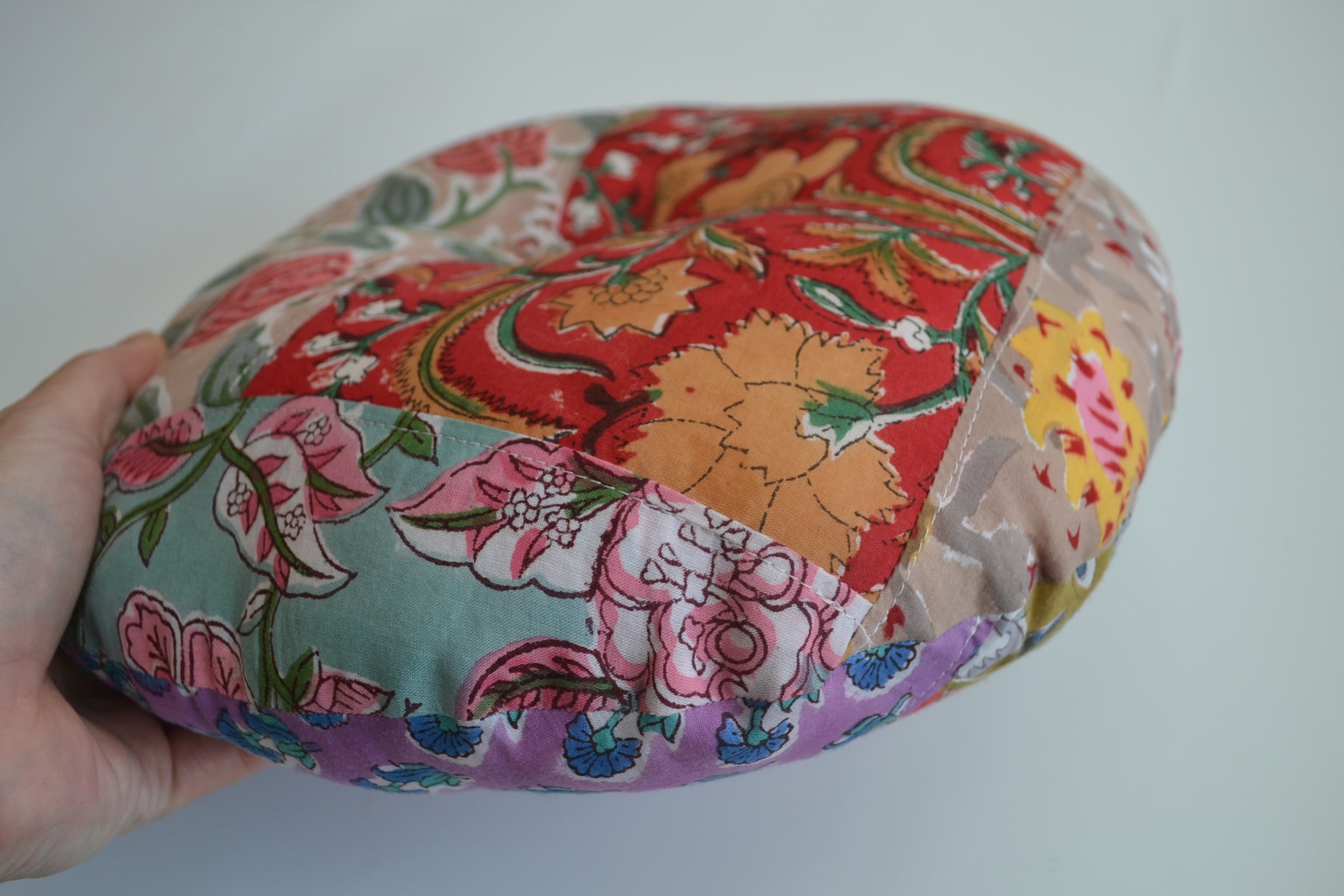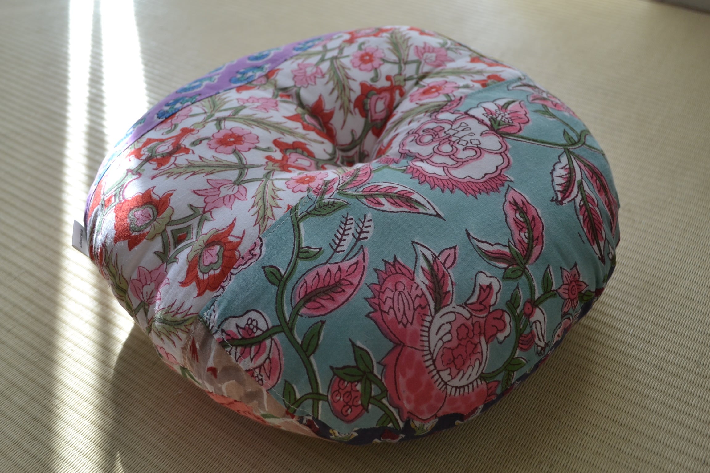丸型ペットクッション①/ブロックプリント/パッチワーク/直径30cm