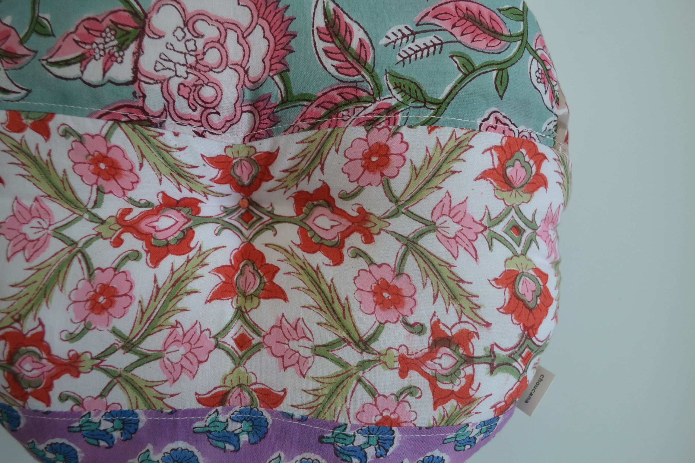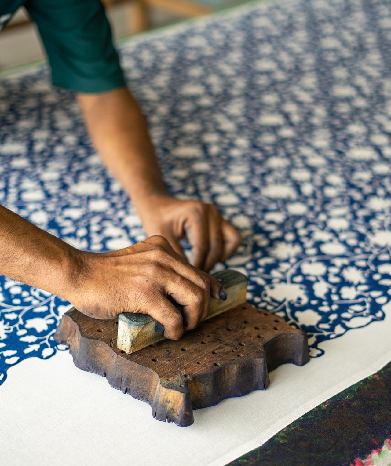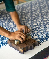 ①インドの伝統的技法で作られたブロックプリント生地使用