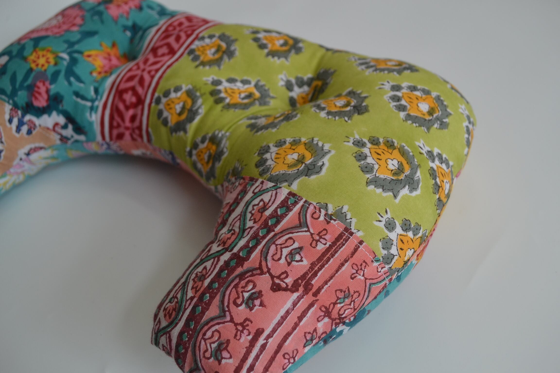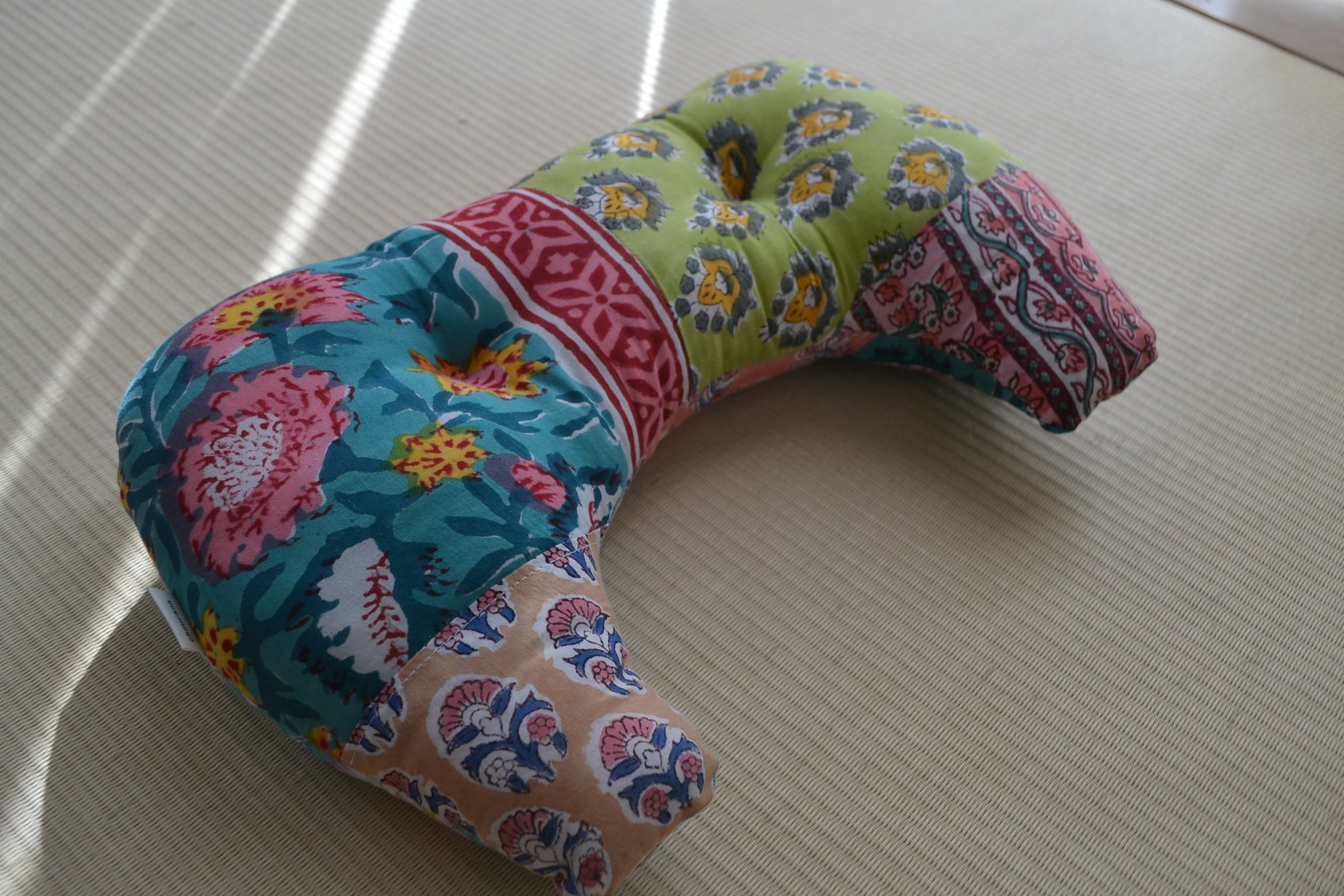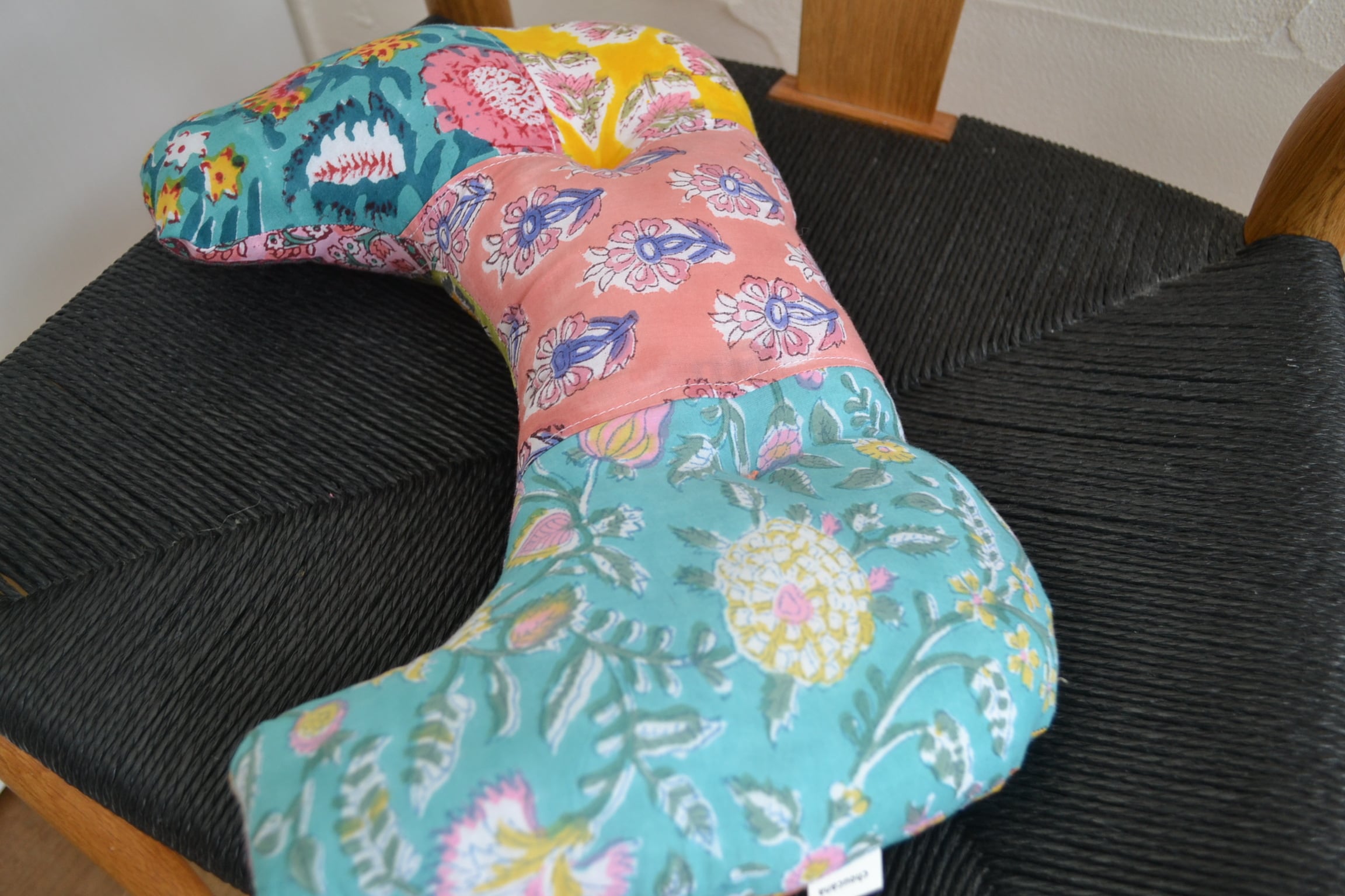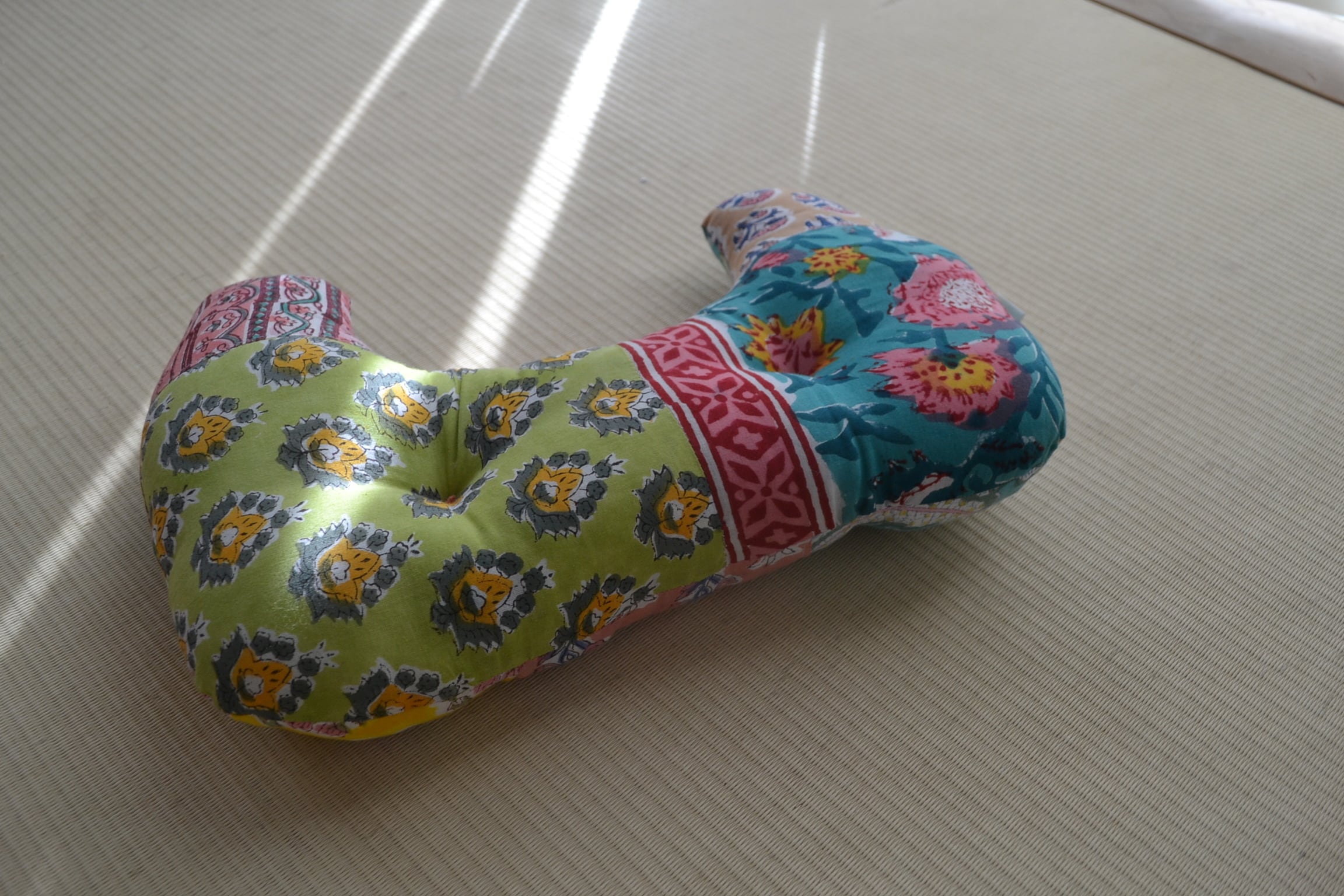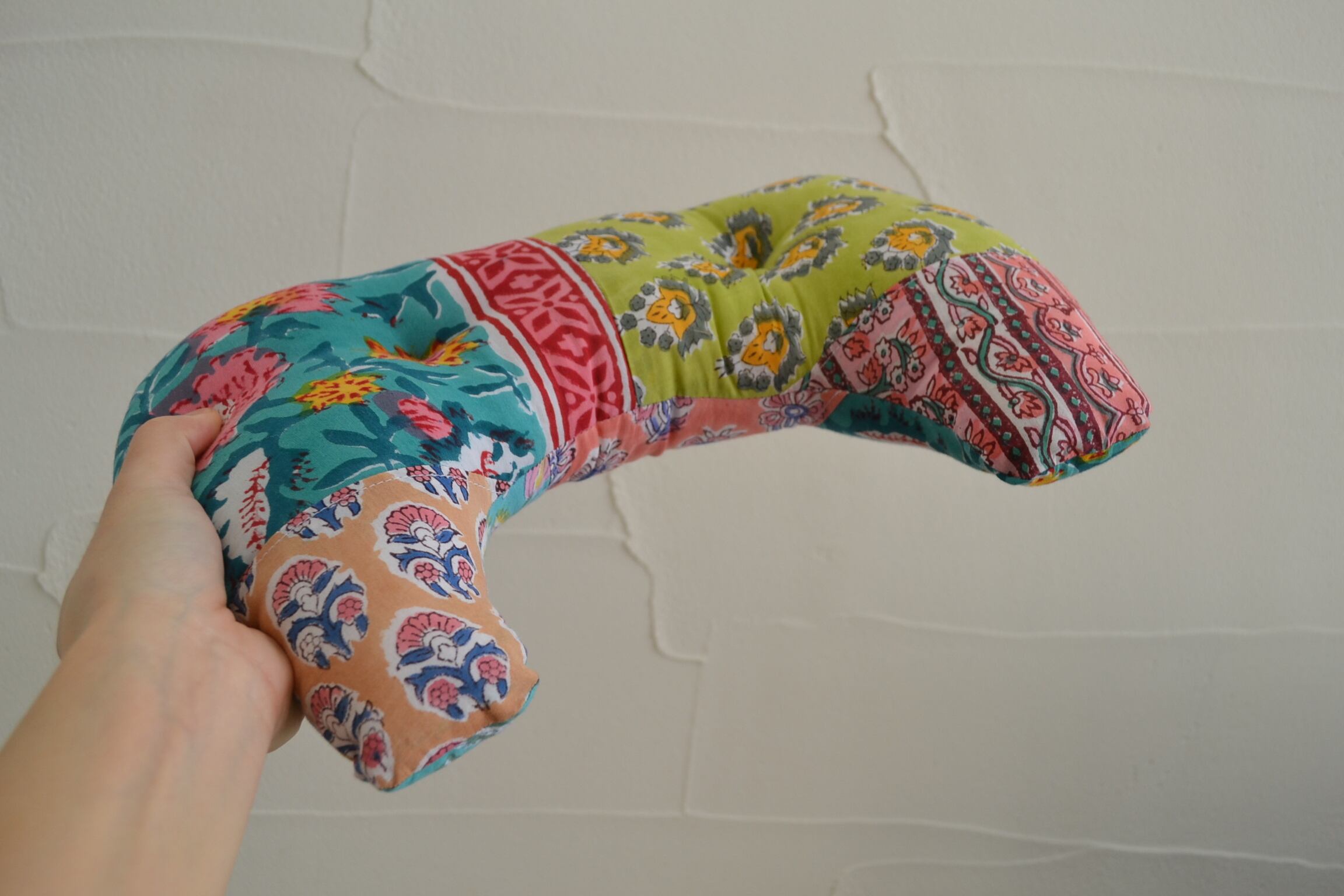 U型ペットクッション⑤/ブロックプリント/パッチワーク