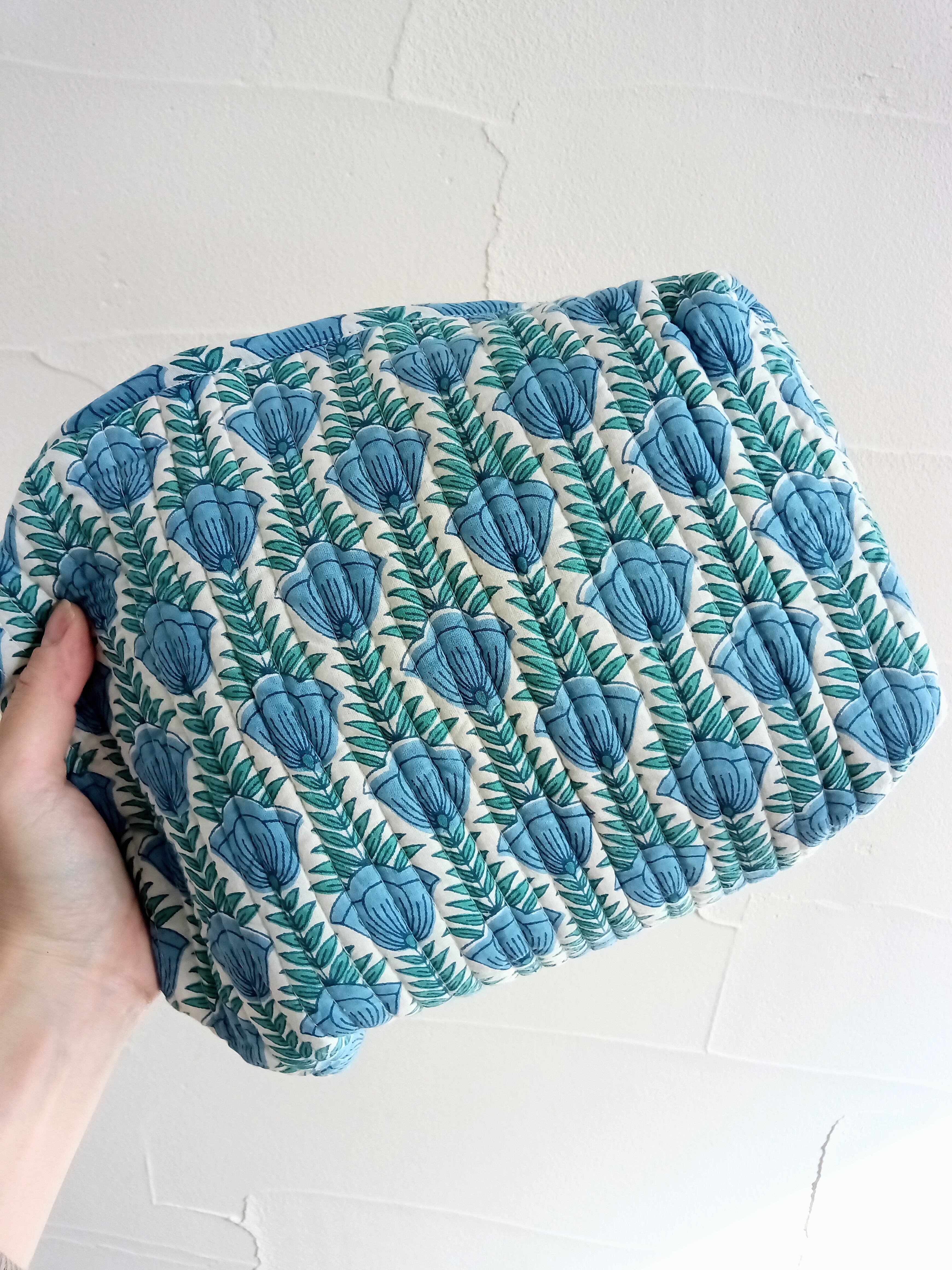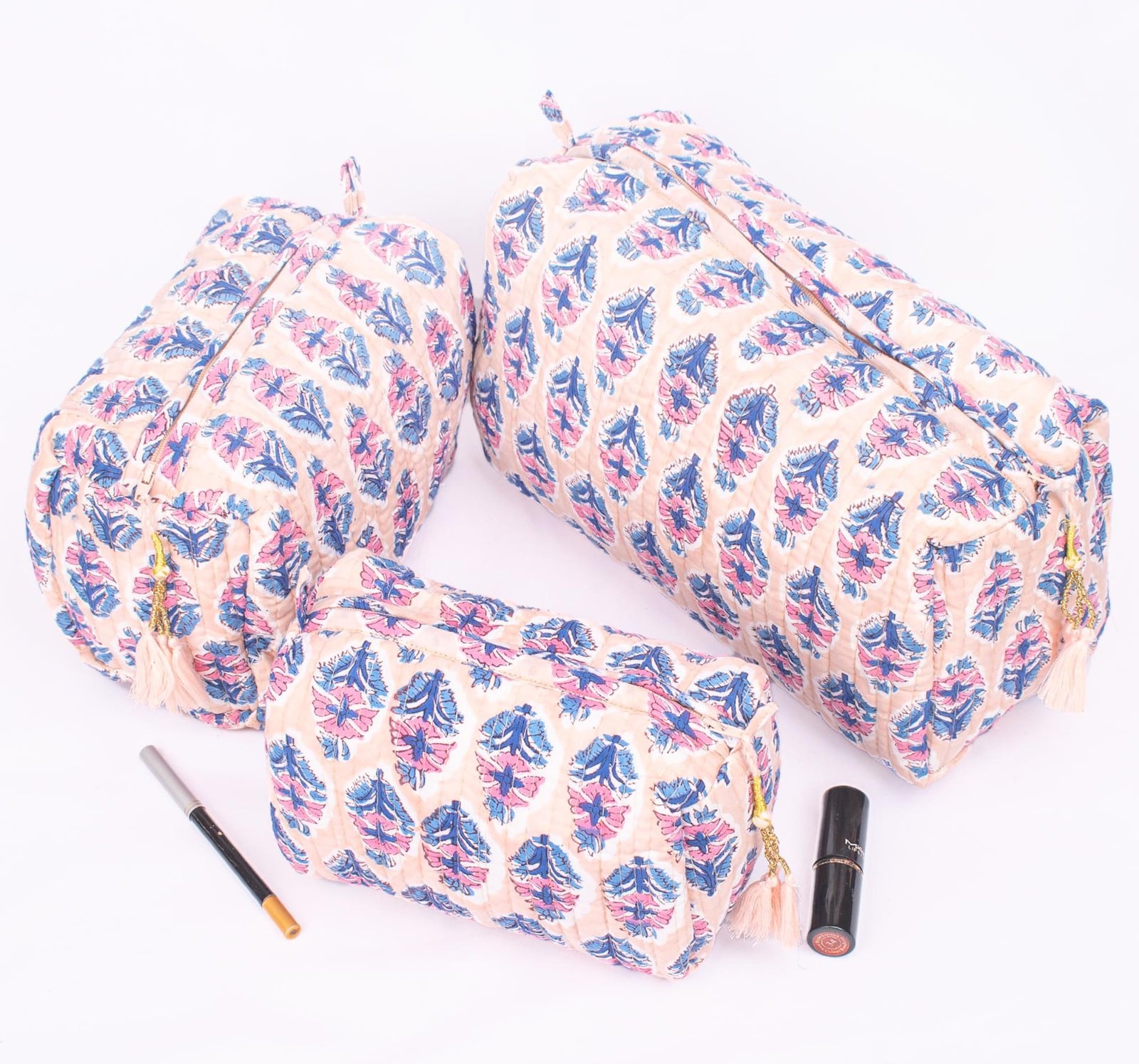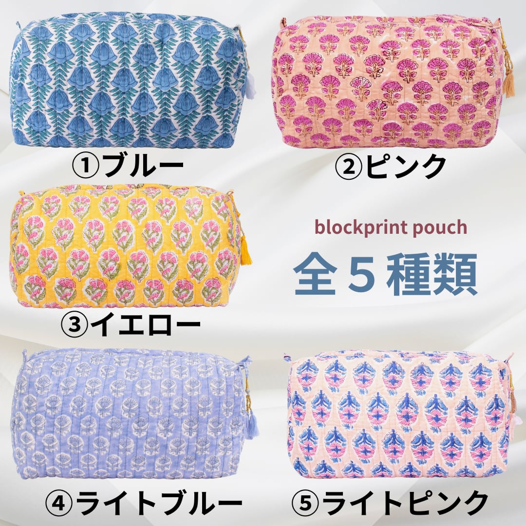 インドの職人が一つひとつ丁寧に仕上げた、ブロックプリントのキルティングポーチ。