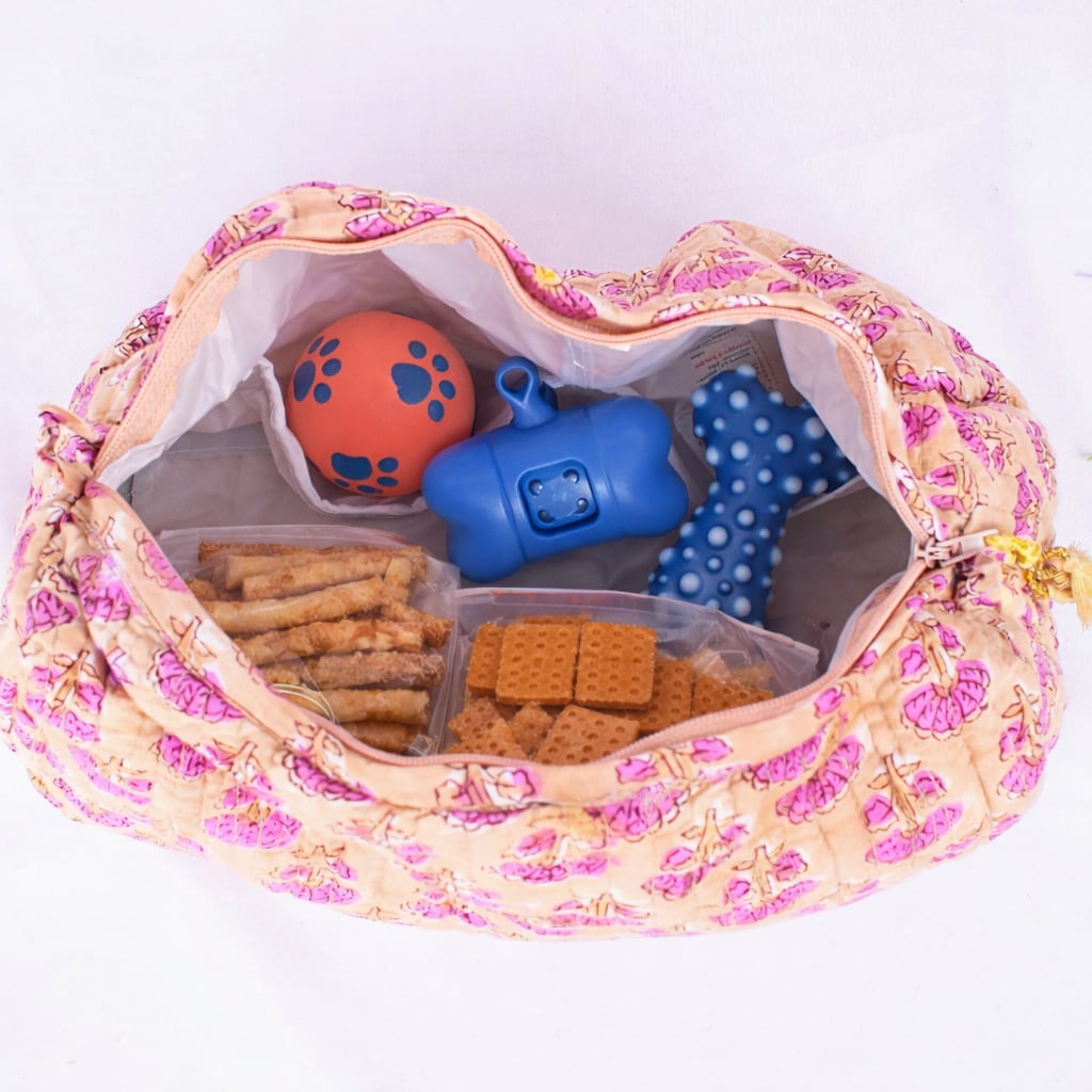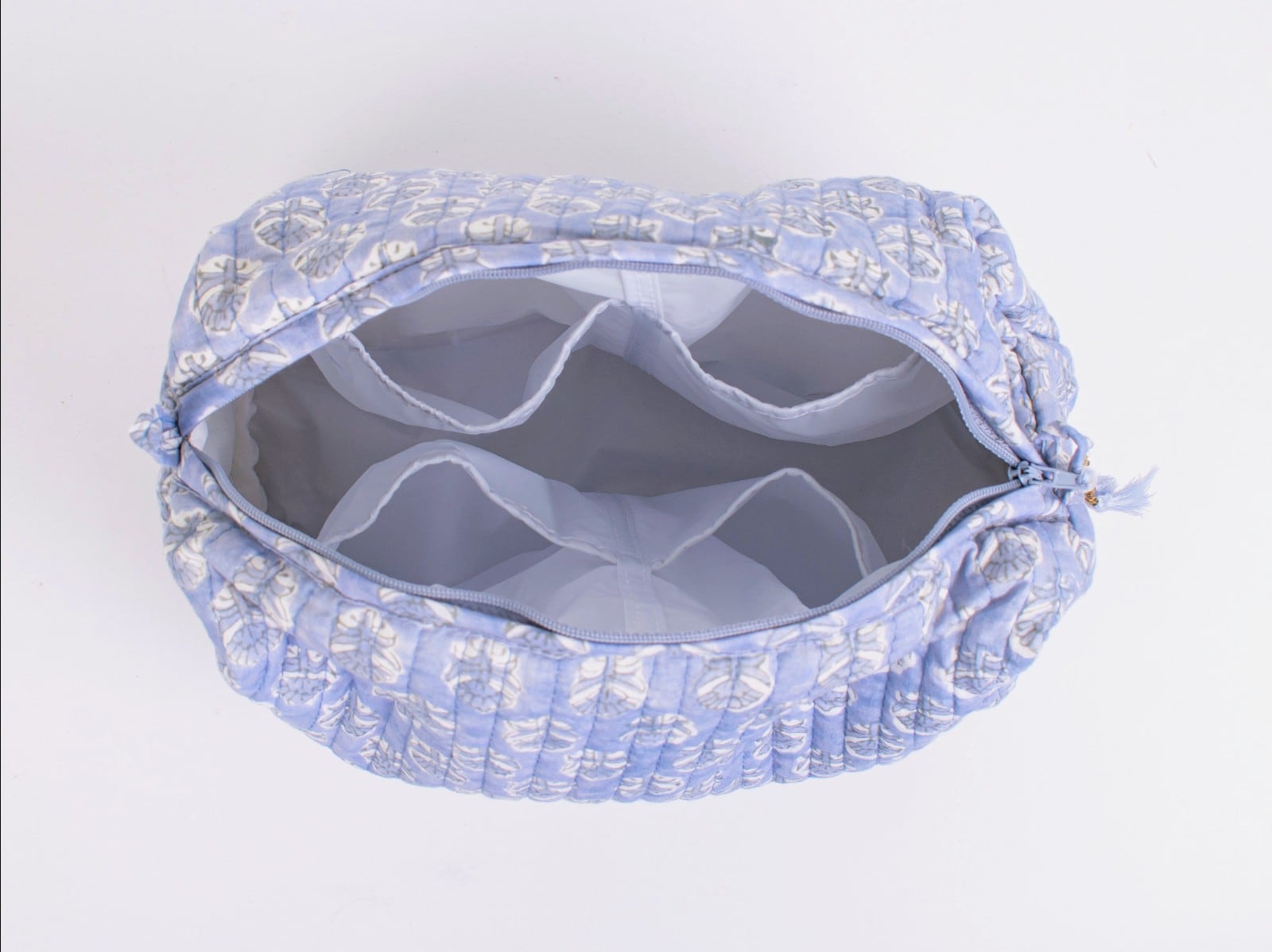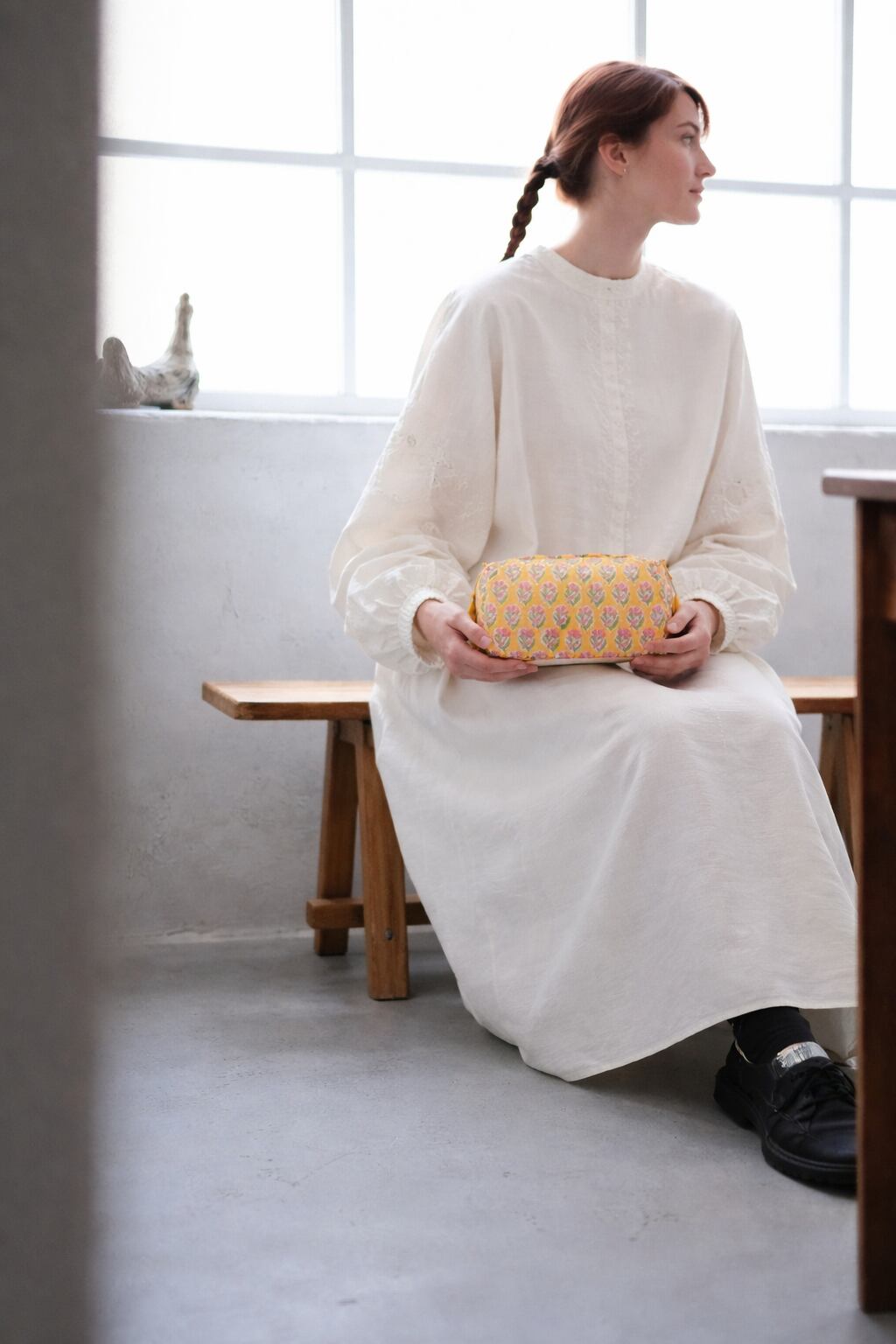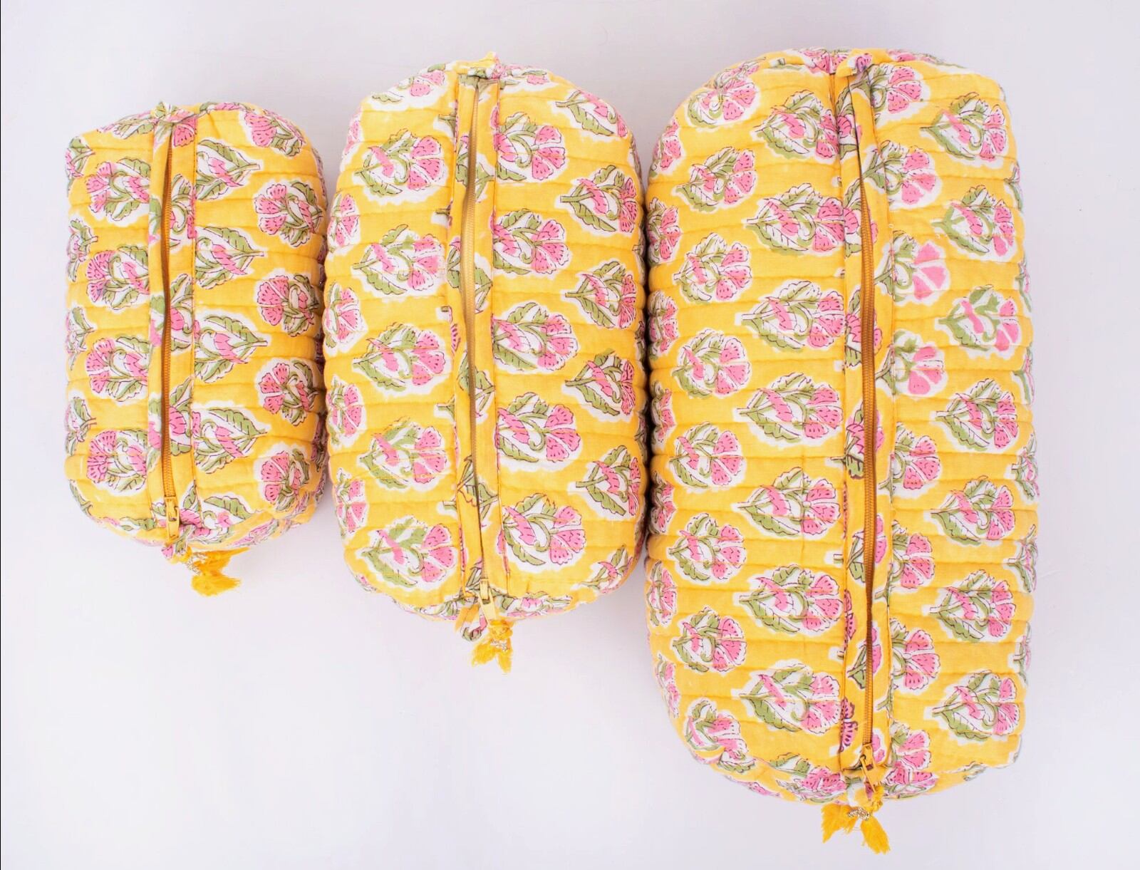 インドの職人が一つひとつ丁寧に仕上げた、ブロックプリントのキルティングポーチ。