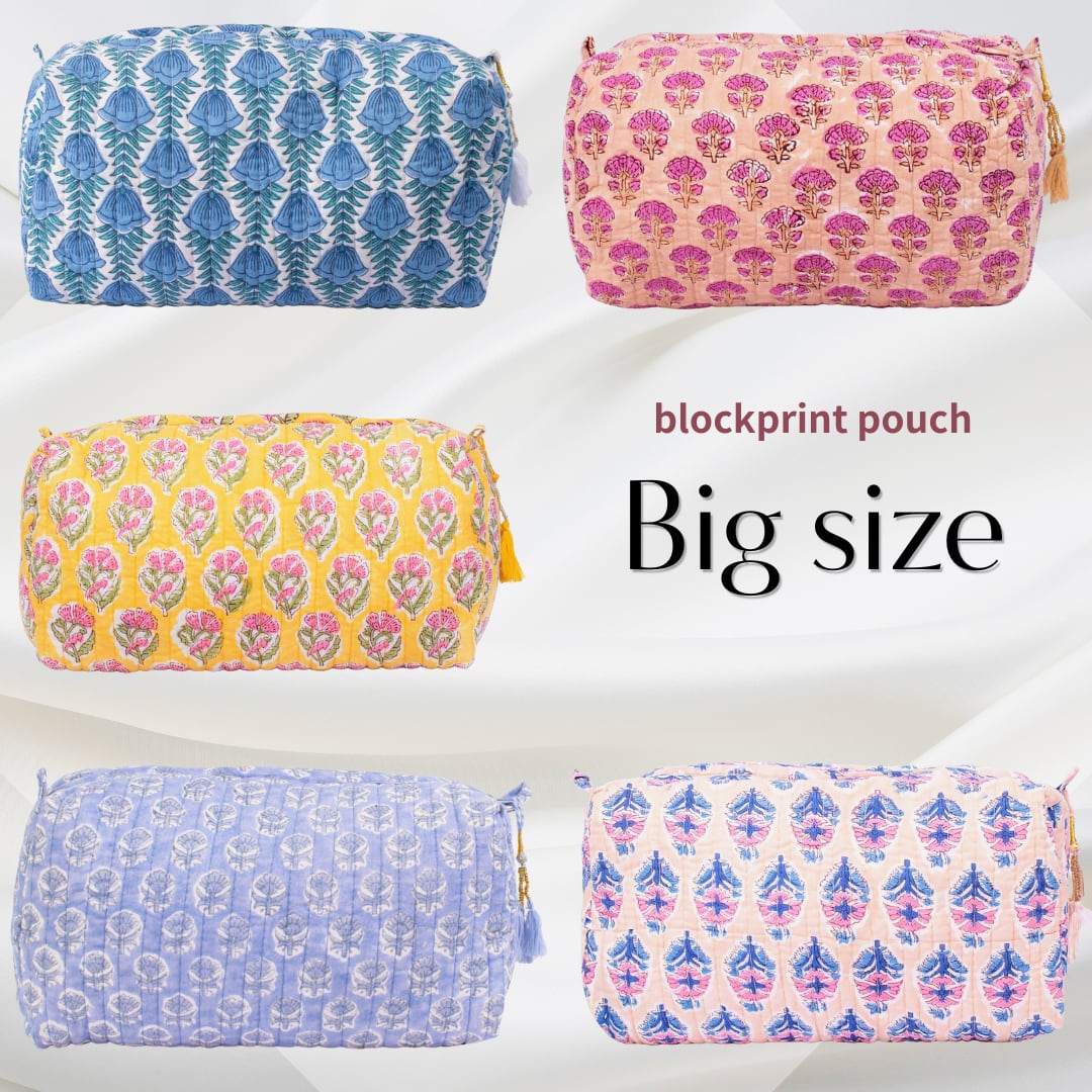 【旅行用大サイズ】ブロックプリント/キルティングポーチ