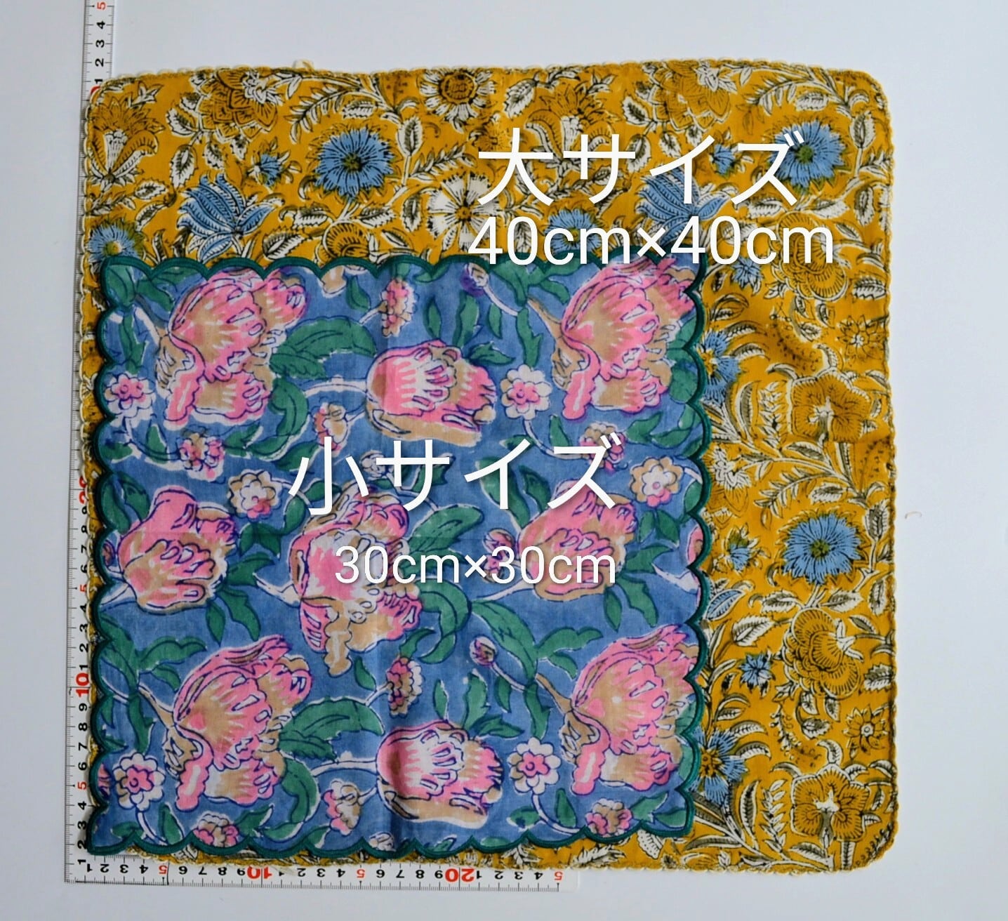 ブロックプリントハンカチ/手しごとのぬくもり/40cm×40cm