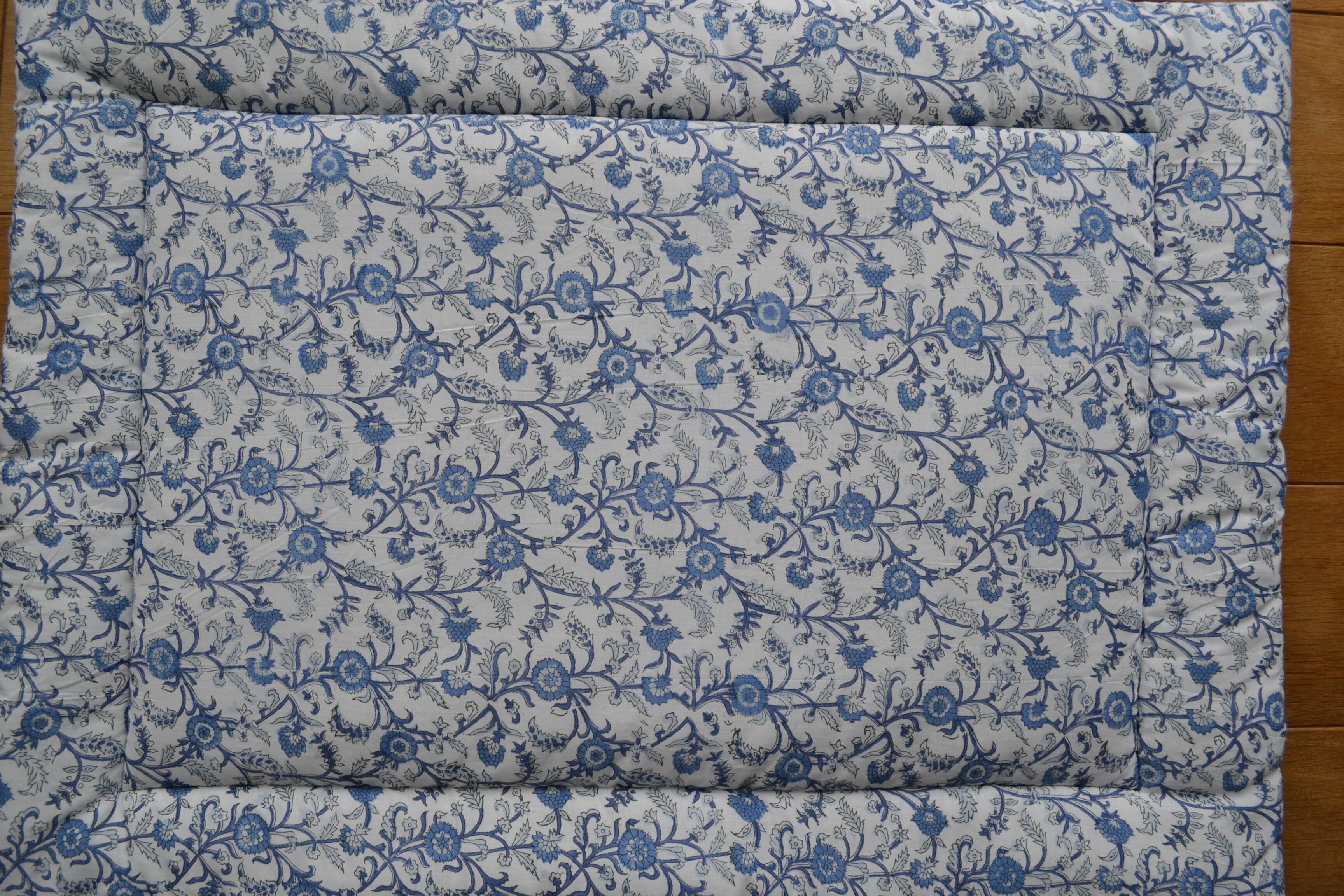 ブロックプリント生地はインドからお取寄せ、マットは国内で一つ一つ丁寧に、
