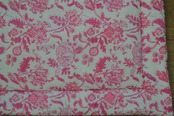 インドのブロックプリントは木版画を押し付けて職人がひとつひとつ模様を描いている為、色のズレや濃淡、染料のハネなどがございます。