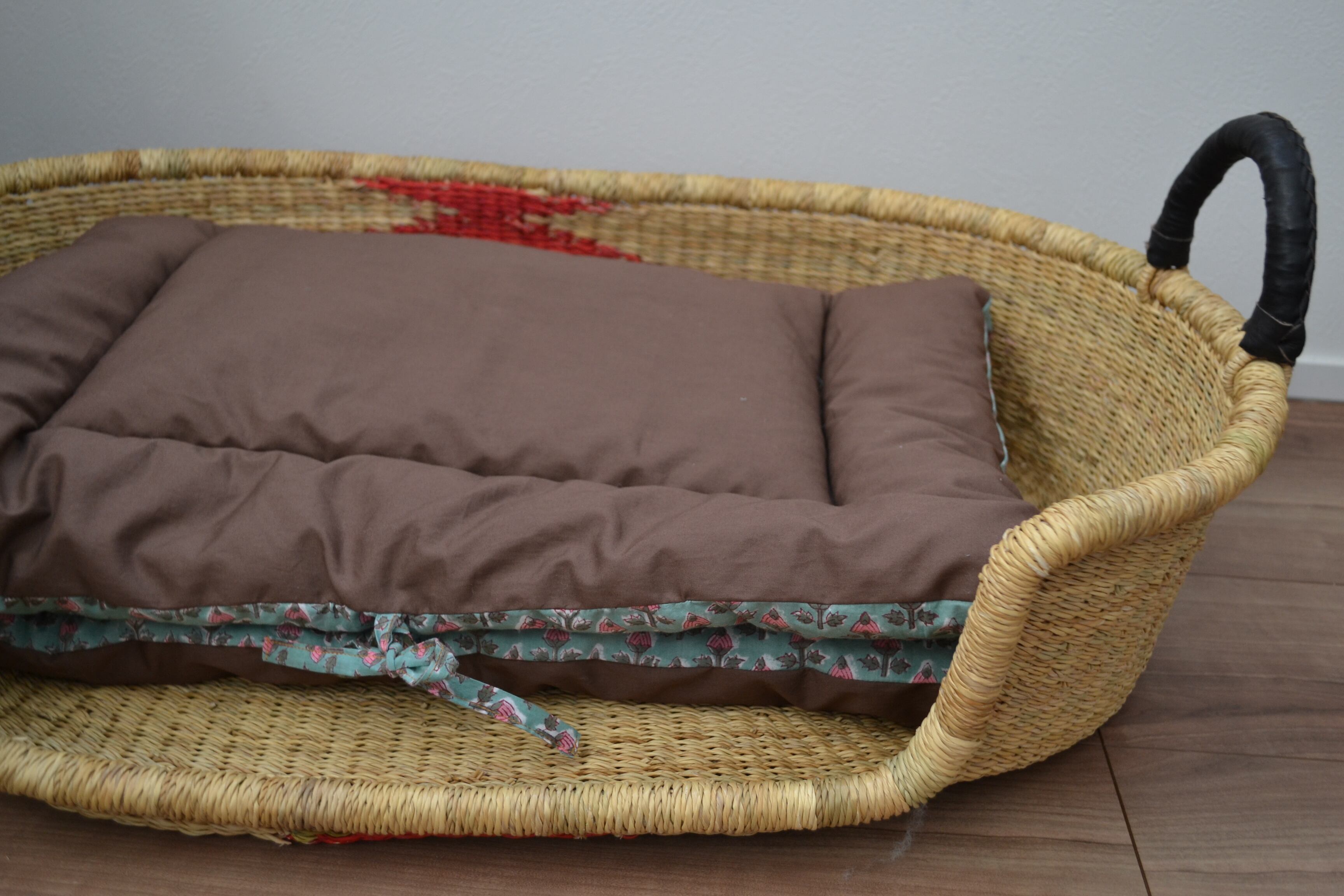 ブロックプリント生地はインドからお取寄せ、マットは国内で一つ一つ丁寧に製作。