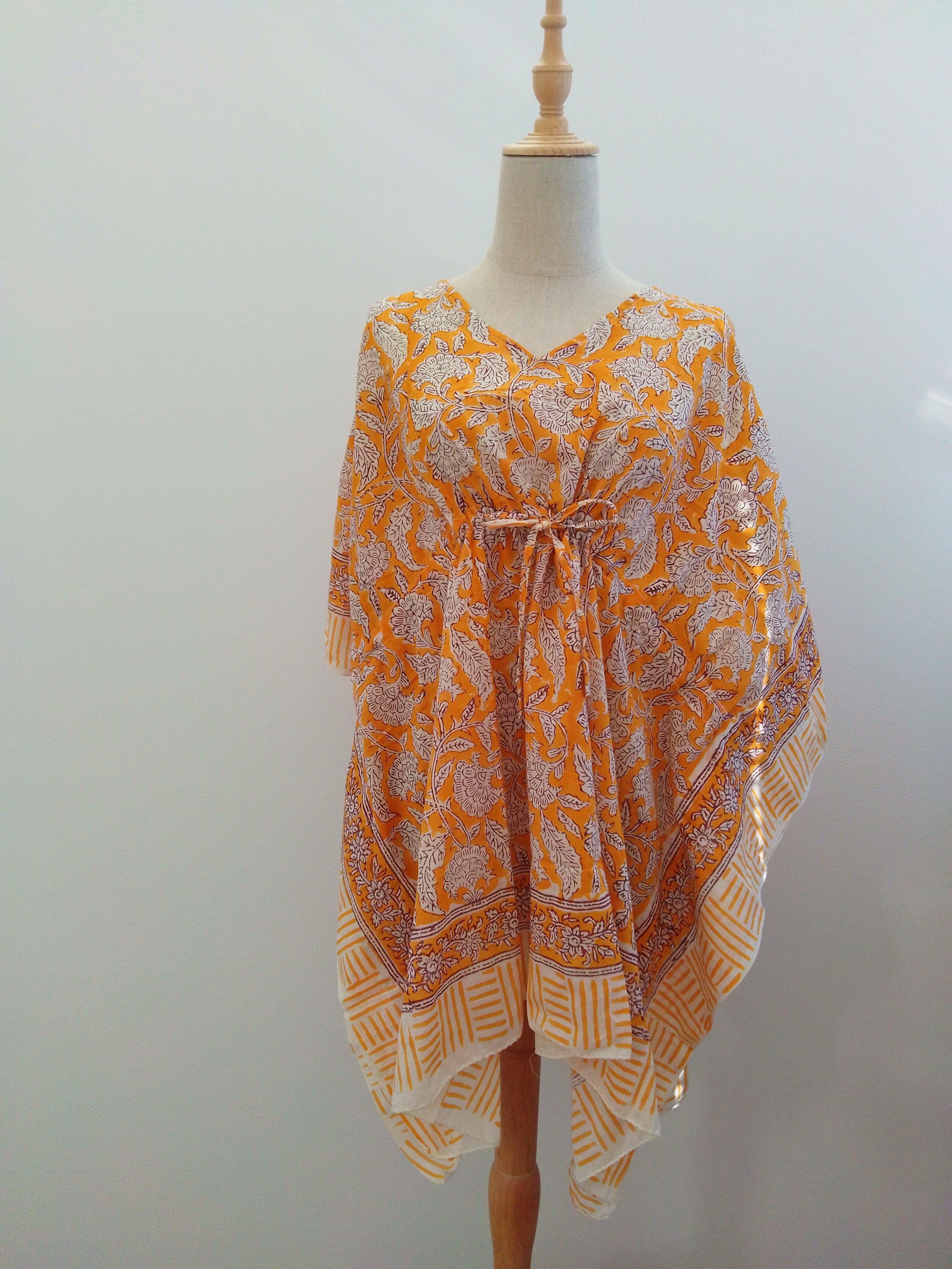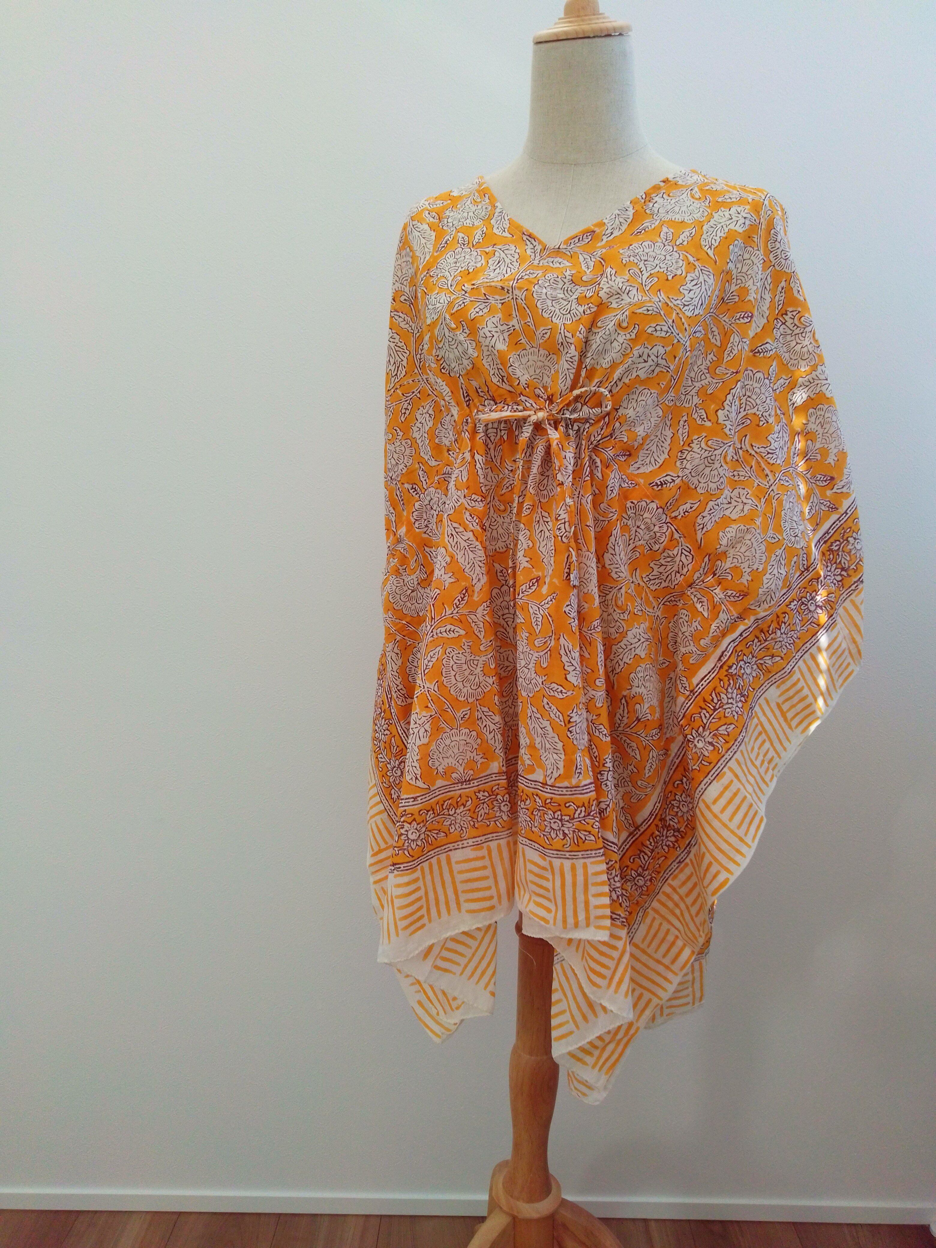 コットンの心地よい素材感とブロックプリントの柄の組み合わせで、季節感や気分を楽しむワンピースとしてお楽しみいただけることでしょう。