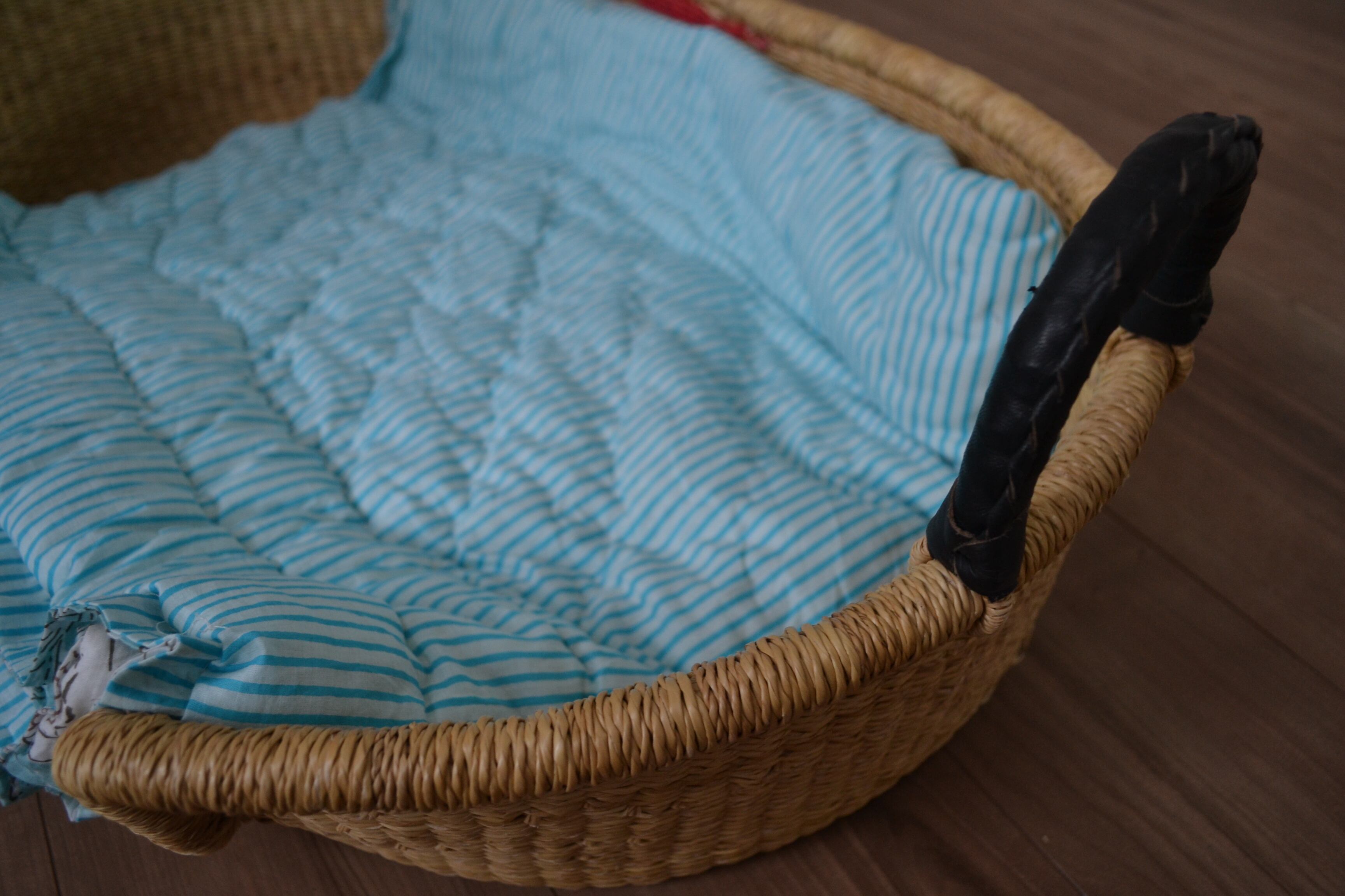 注意:キルト部分は手縫いでザックリ縫われているため、ペットの爪に引っかかる場合がございます。