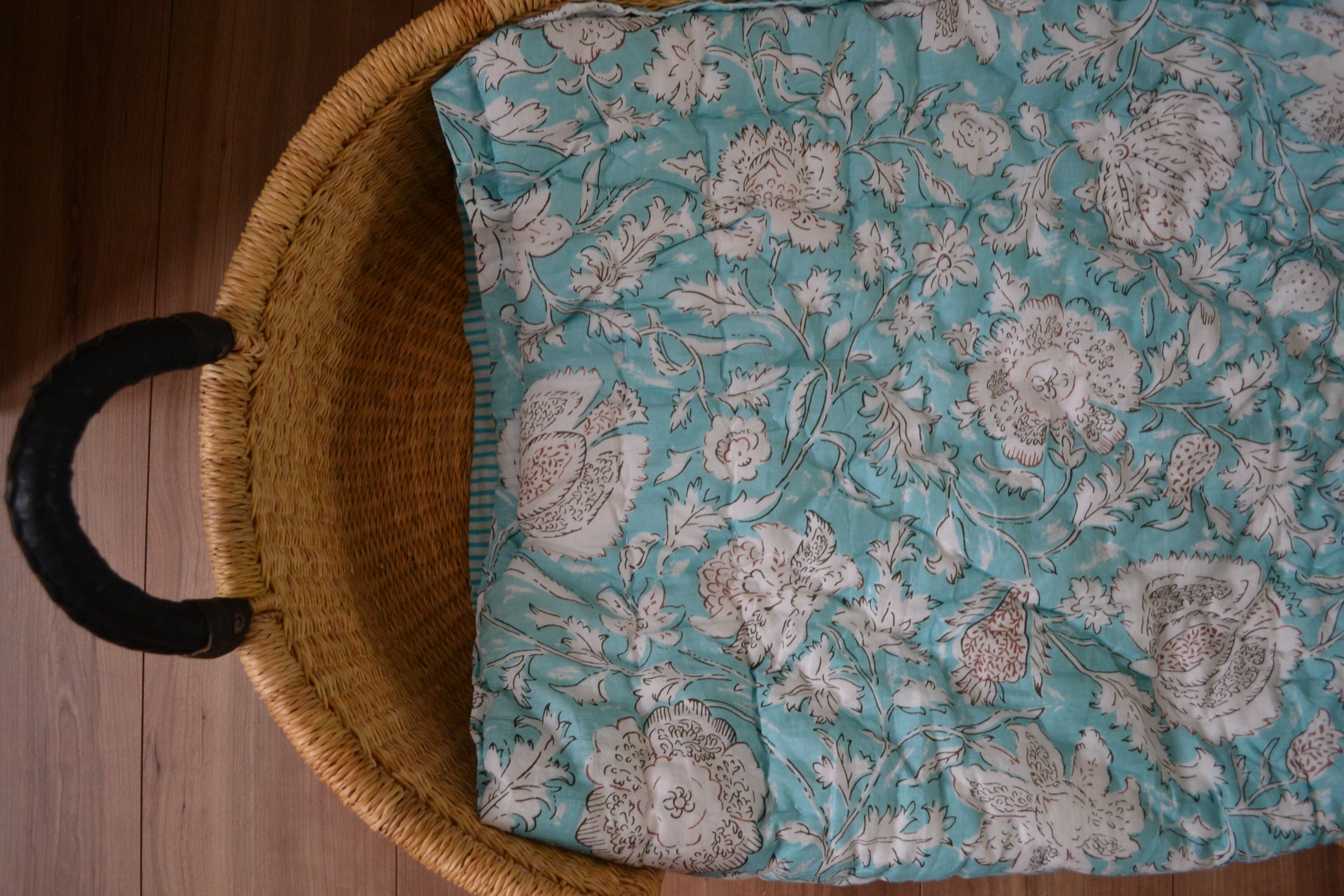 ブロックプリントキルト/綿入り/パッチワーク/ミニサイズ