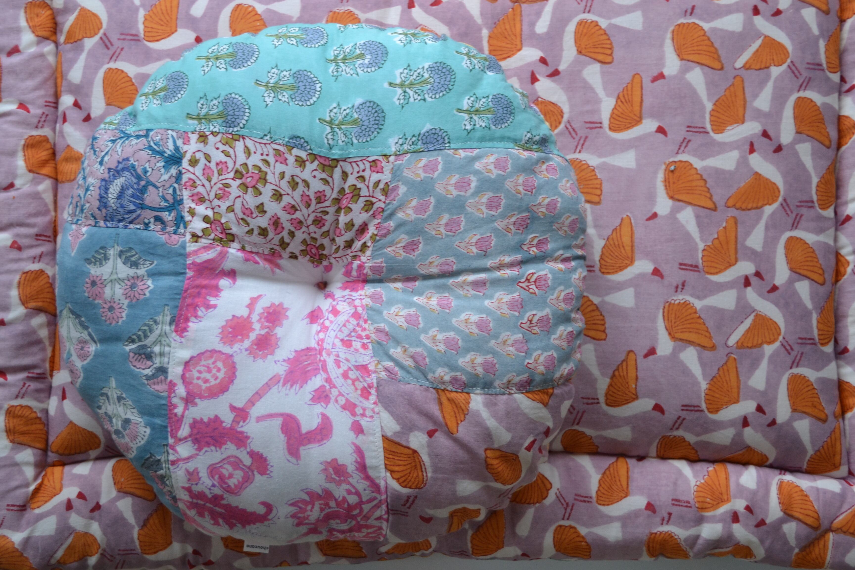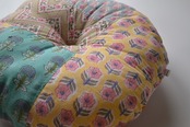 ブロックプリント生地はインドからお取寄せ、マットは国内で一つ一つ丁寧に製作。
