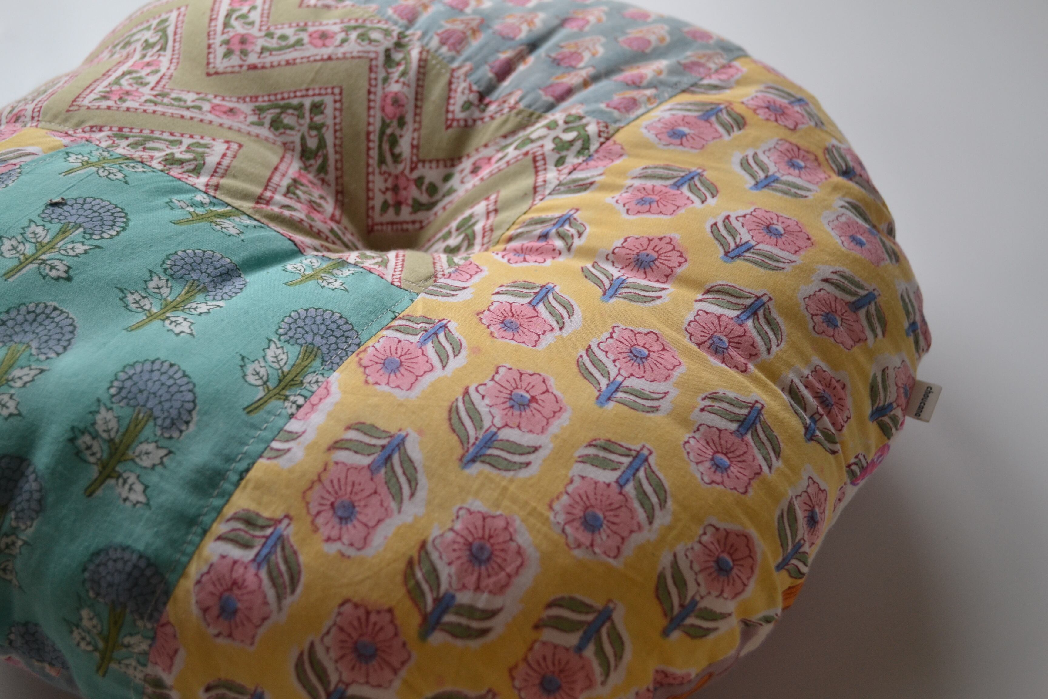☆パッチワーク☆【洗える×オシャレ】なペットクッション ブロックプリント/丸型①